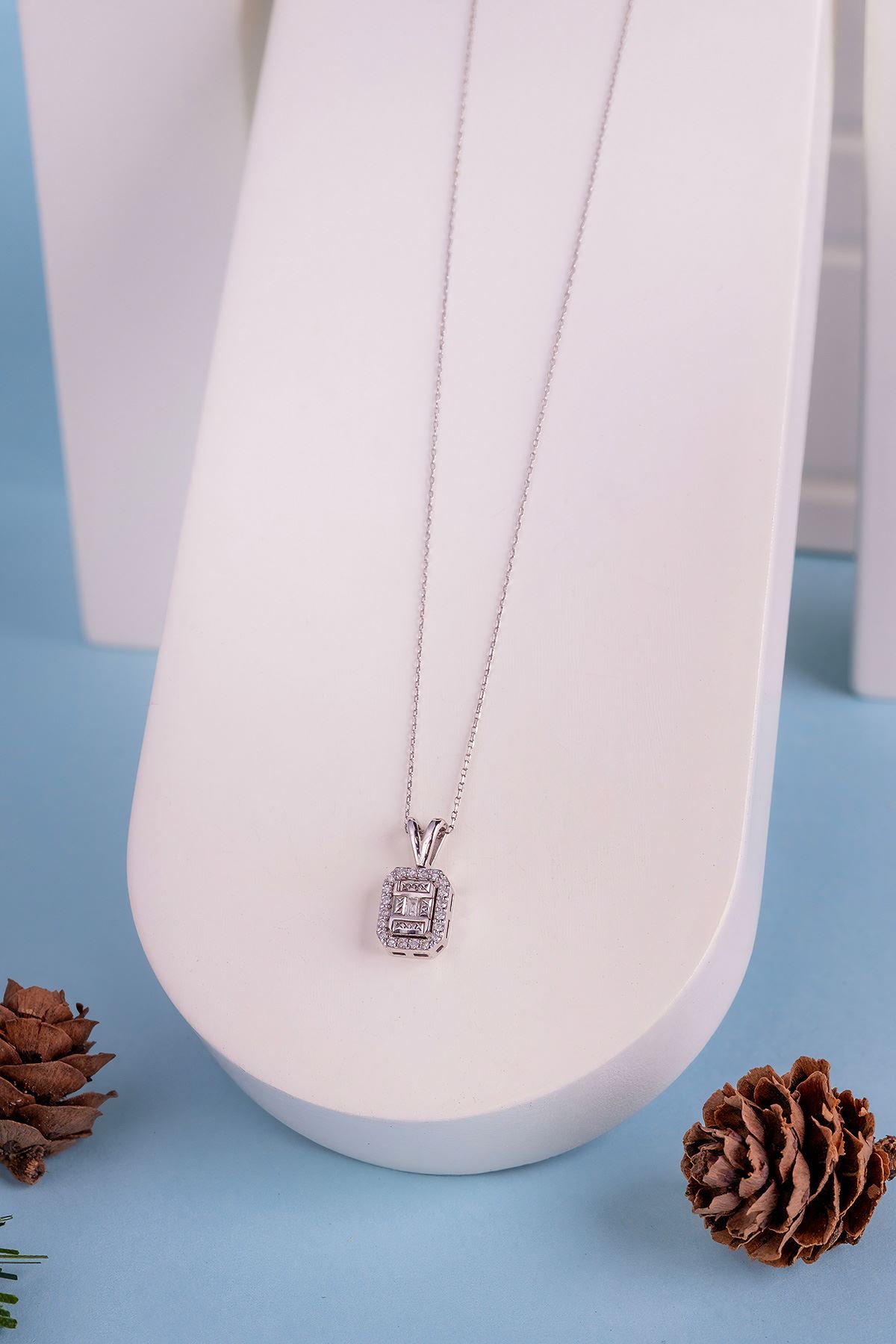 Günlük kombinlerinize uyum sağlayacak olan Pırlanta Efektli Baget Kolye ile dikkatleri üzerinize çekin. Her an sizi tamamlayacak Pırlanta Efektli Baget Kolye sizin için vazgeçilmez bir parça olacaktır. Şıklığınızı taçlandırdığımız özgün tasarımlarımız ile kendinizi şımartın.