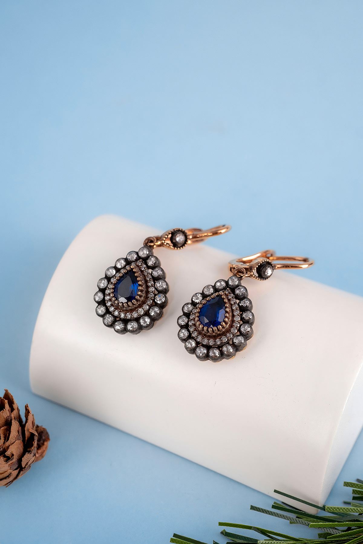 Elmas Safir Taşlı Sallamalı Küpe kaliteli işçiliği ile güvenle alışveriş yapabileceğiniz