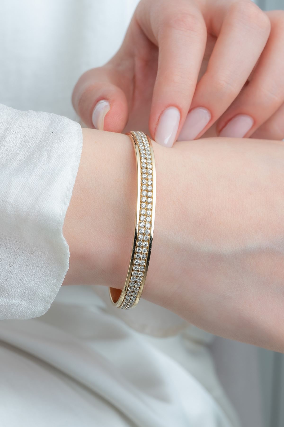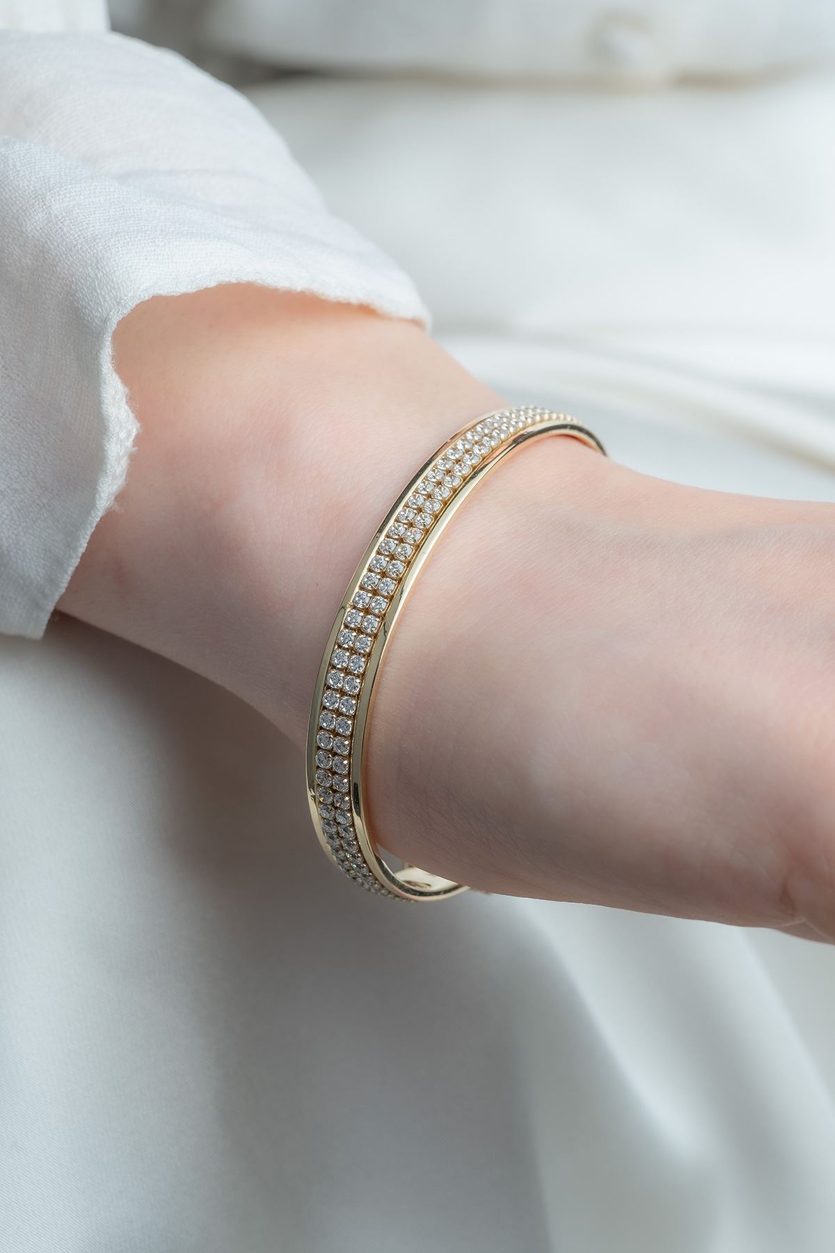 Günlük kombinlerinize uyum sağlayacak olan 14 Ayar Altın 2 Sıra Taşlı Fantezi Bilezik ile dikkatleri üzerinize çekin. Her an sizi tamamlayacak 14 Ayar Altın 2 Sıra Taşlı Fantezi Bilezik sizin için vazgeçilmez bir parça olacaktır. Şıklığınızı taçlandırdığımız özgün tasarımlarımız ile kendinizi şımartın.