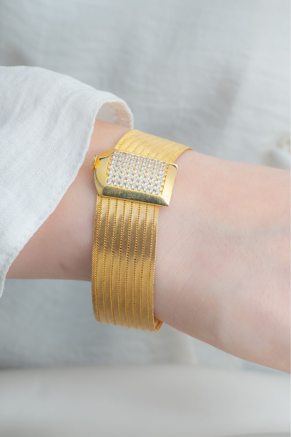 Günlük kombinlerinize uyum sağlayacak olan 14 Ayar Altın 9 Sıra Taşlı Trabzon Bileklik ile dikkatleri üzerinize çekin. Her an sizi tamamlayacak 14 Ayar Altın 9 Sıra Taşlı Trabzon Bileklik sizin için vazgeçilmez bir parça olacaktır. Şıklığınızı taçlandırdığımız özgün tasarımlarımız ile kendinizi şımartın.