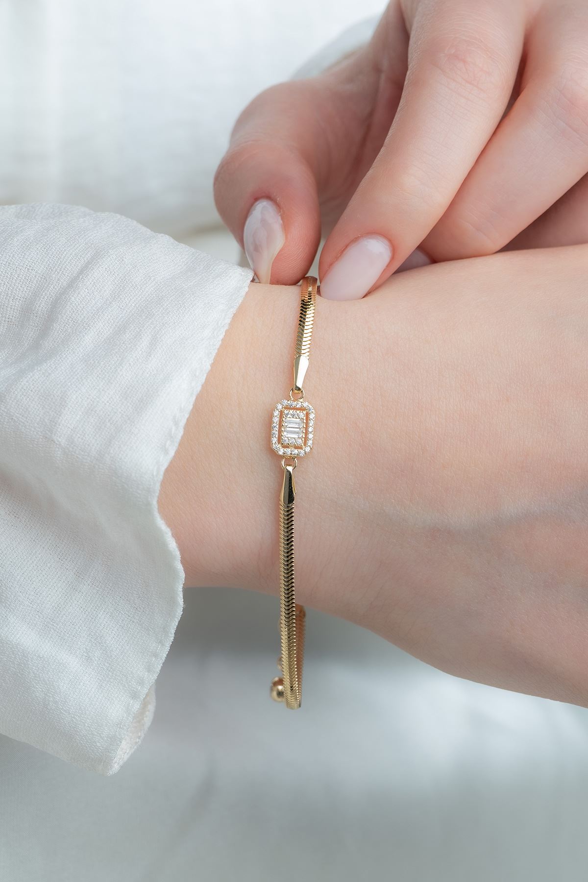 14 Ayar Altın Baget Taşlı Bileklik kaliteli işçiliği ile güvenle alışveriş yapabileceğiniz