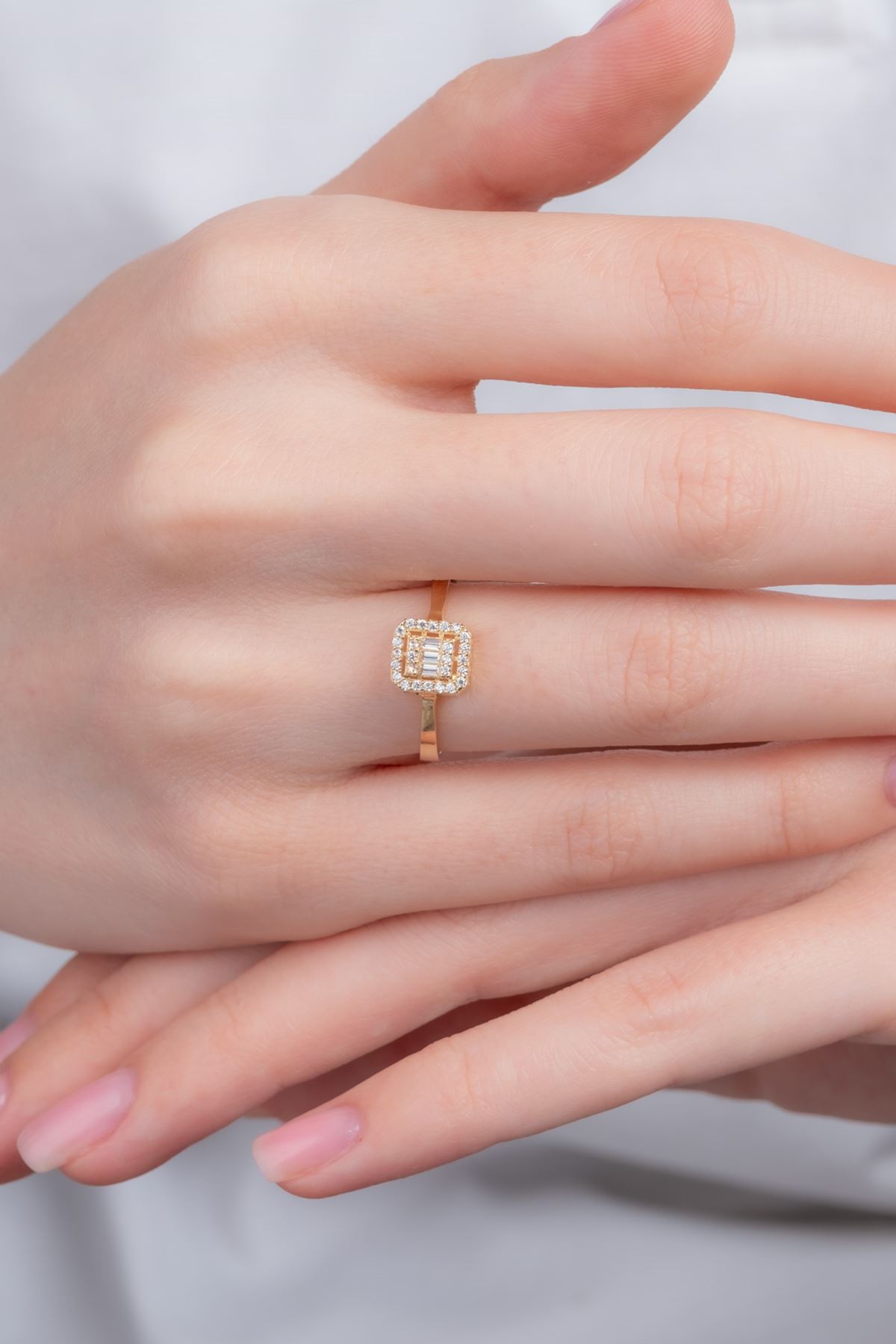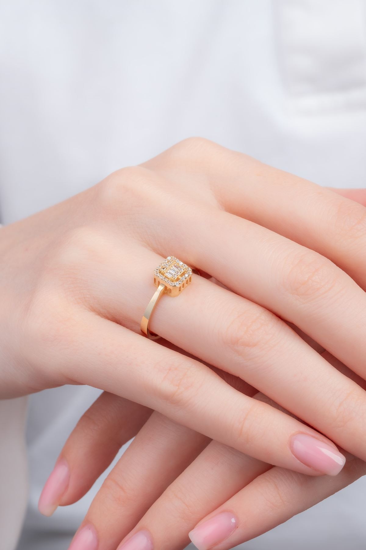 14 Ayar Altın Baget Taşlı İnce Yüzük kaliteli işçiliği ile güvenle alışveriş yapabileceğiniz