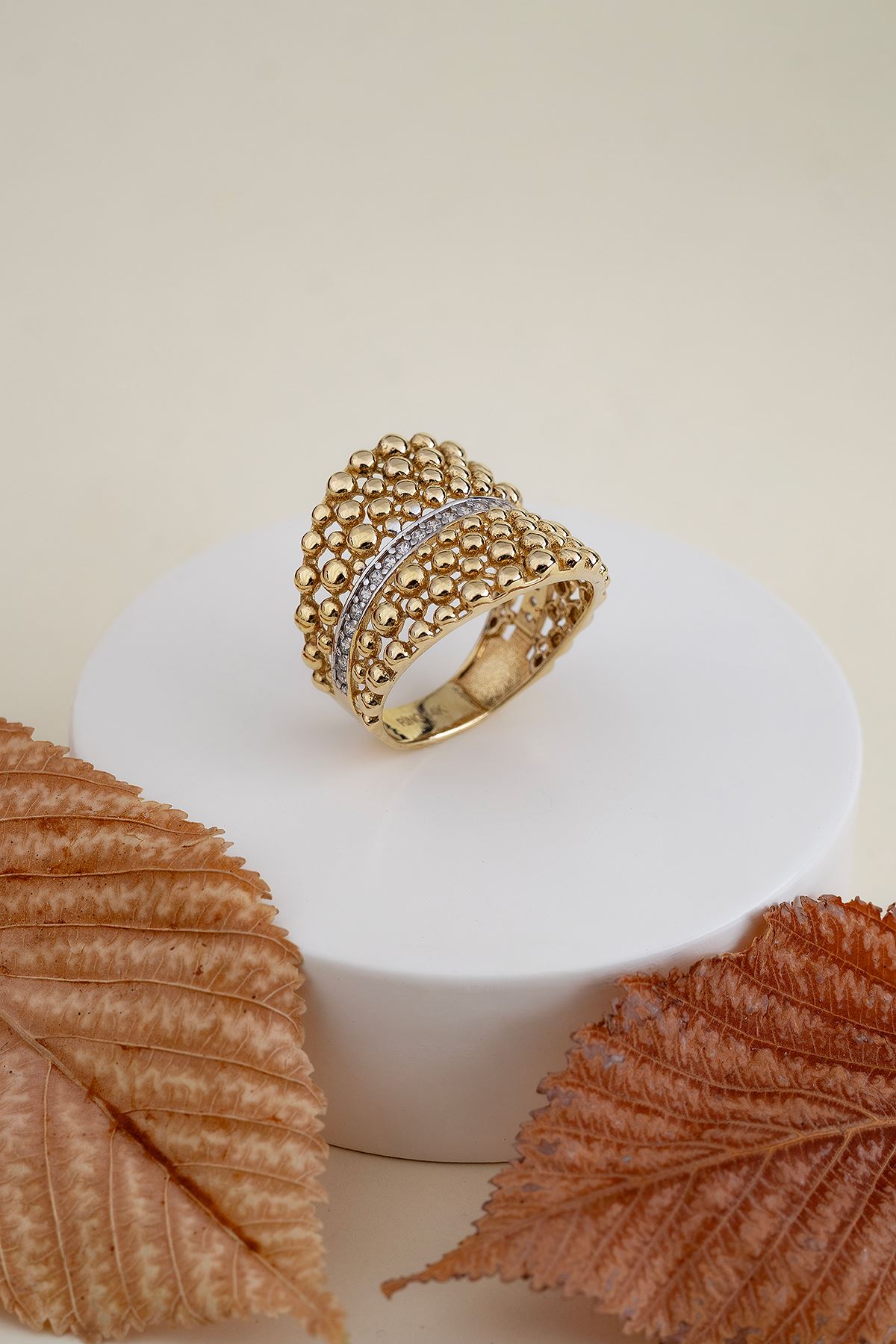 14 Ayar Altın Beyaz Taşlı Büyük Tasarım Yüzük kaliteli işçiliği ile güvenle alışveriş yapabileceğiniz