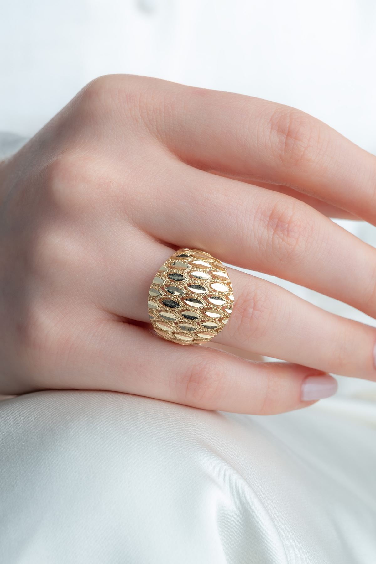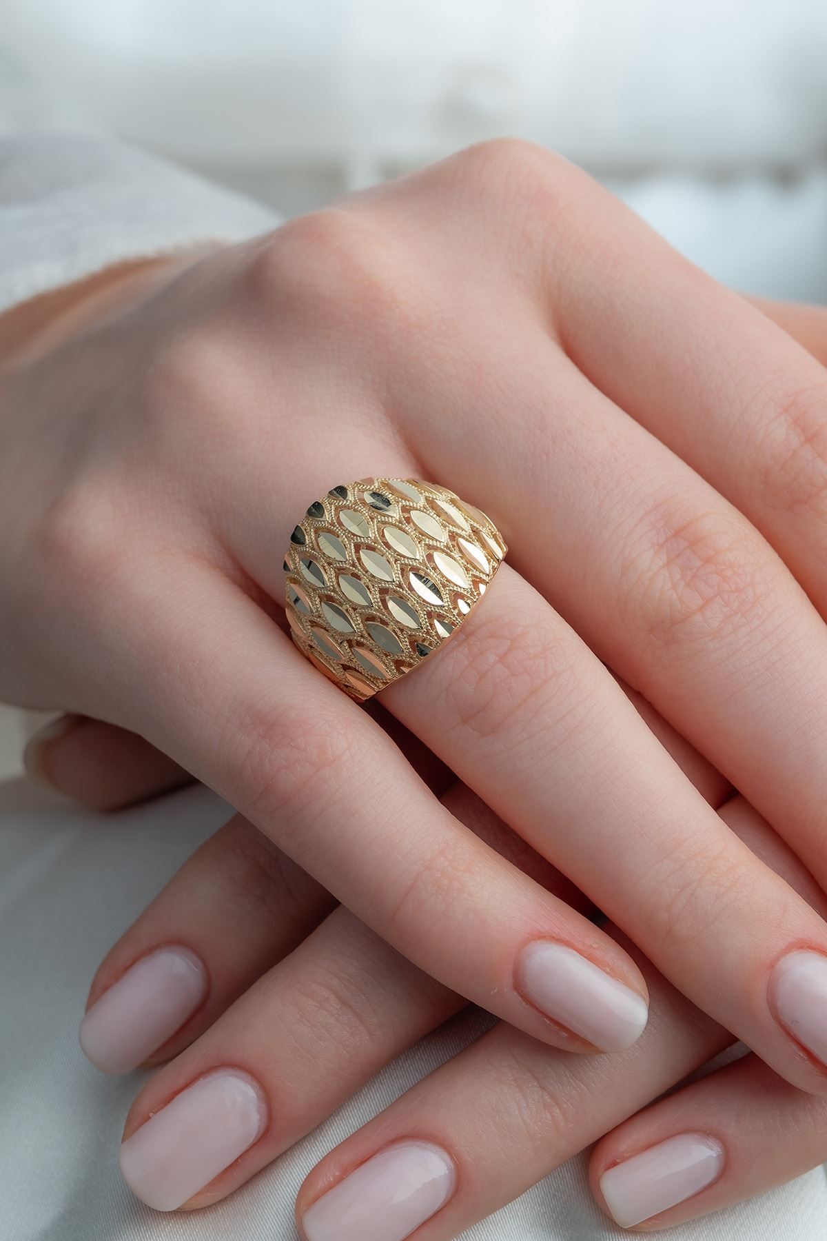 14 Ayar Altın Büyük Gösterişli Yüzük kaliteli işçiliği ile güvenle alışveriş yapabileceğiniz