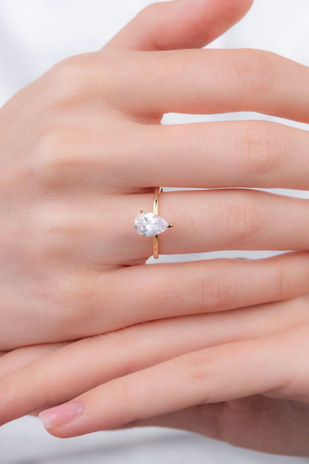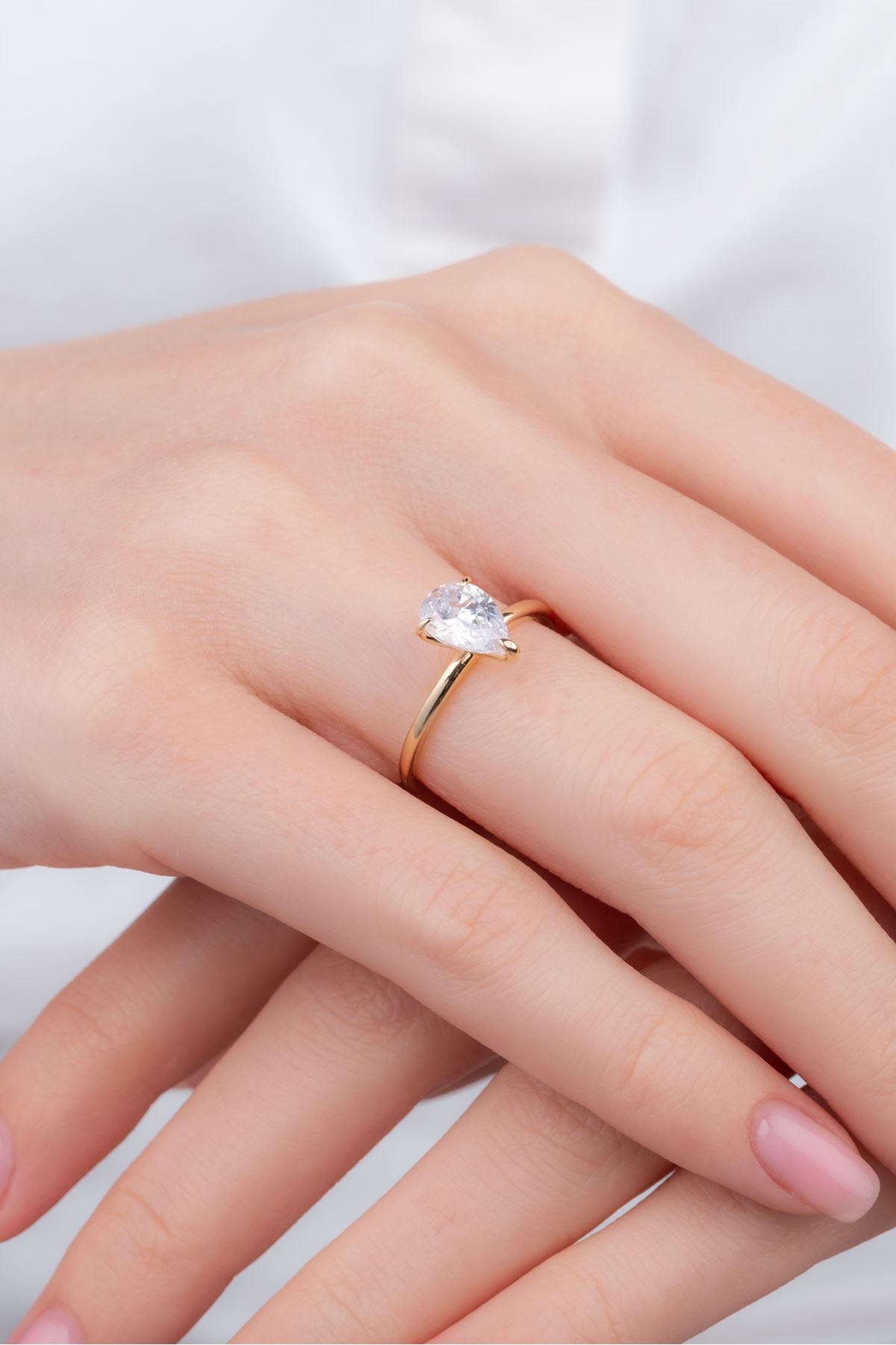 14 Ayar Altın Damla Taşlı Tektaş Yüzük kaliteli işçiliği ile güvenle alışveriş yapabileceğiniz