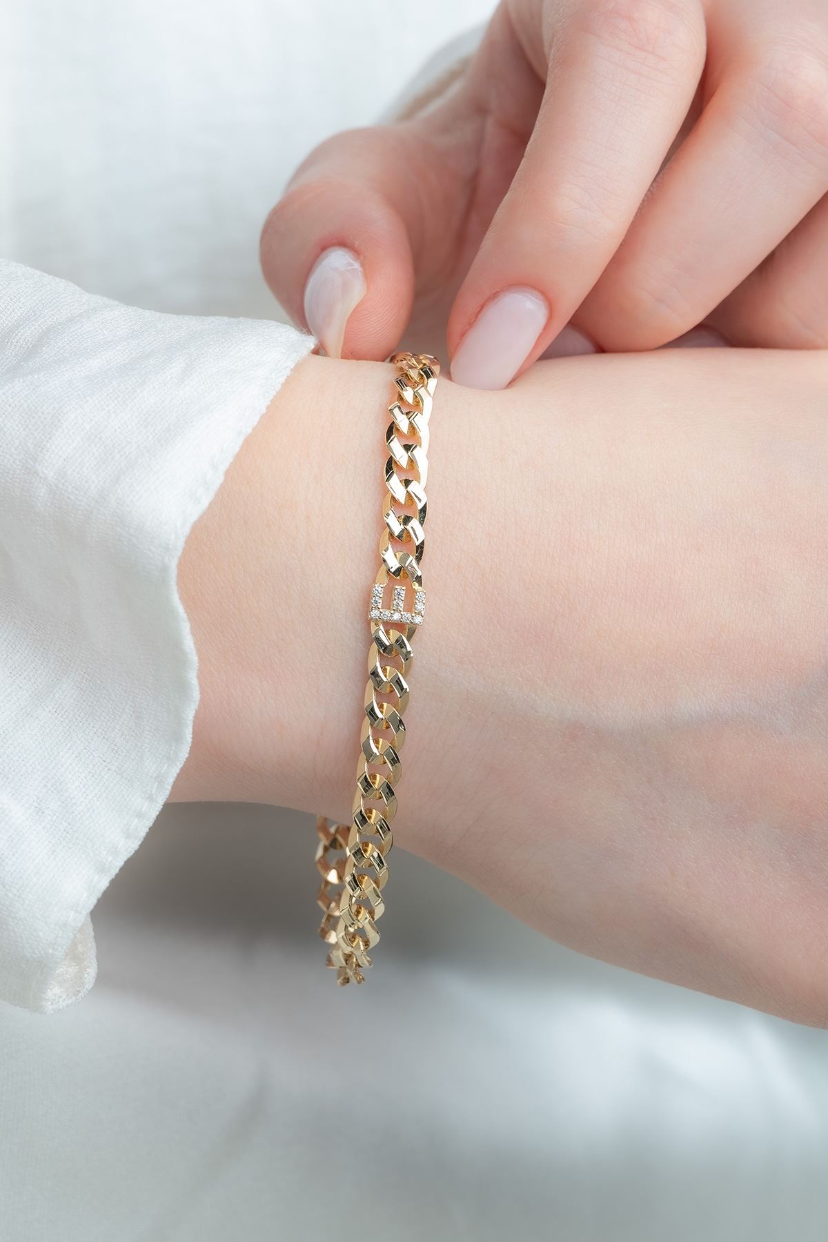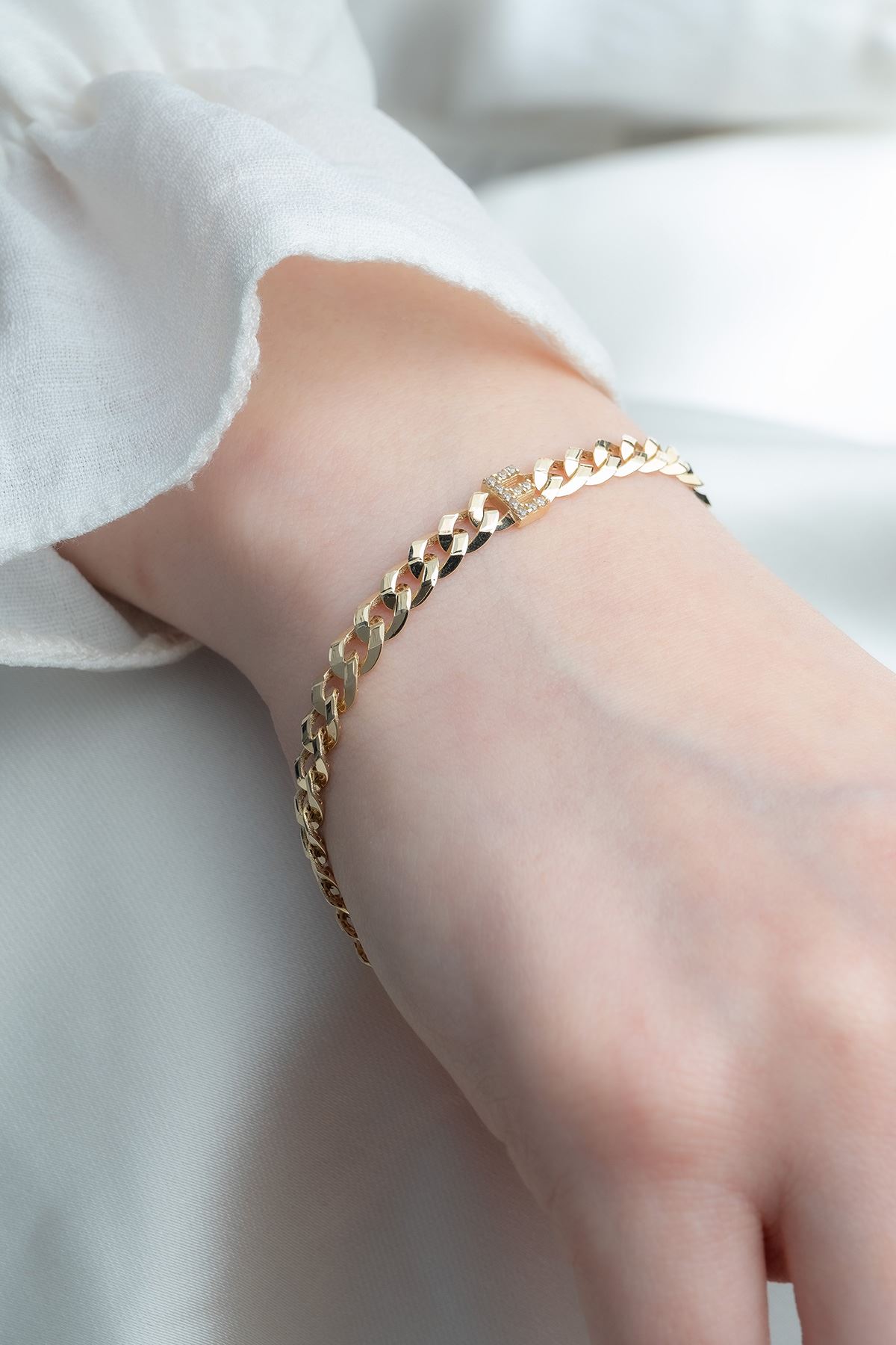 14 Ayar Altın E Harfli Gurmet Bileklik kaliteli işçiliği ile güvenle alışveriş yapabileceğiniz