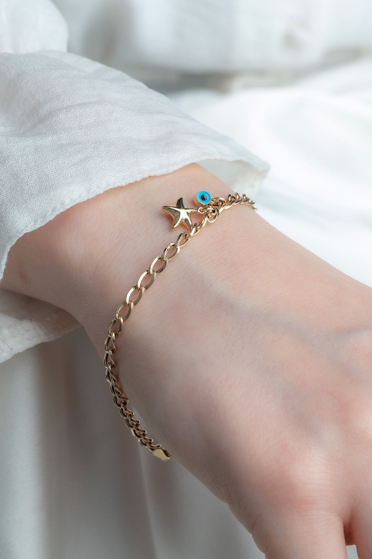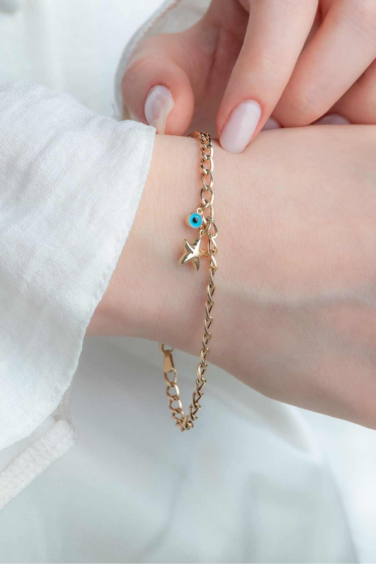 14 AYar Altın İnce Yıldız Figür Nazarlı Bileklik kaliteli işçiliği ile güvenle alışveriş yapabileceğiniz