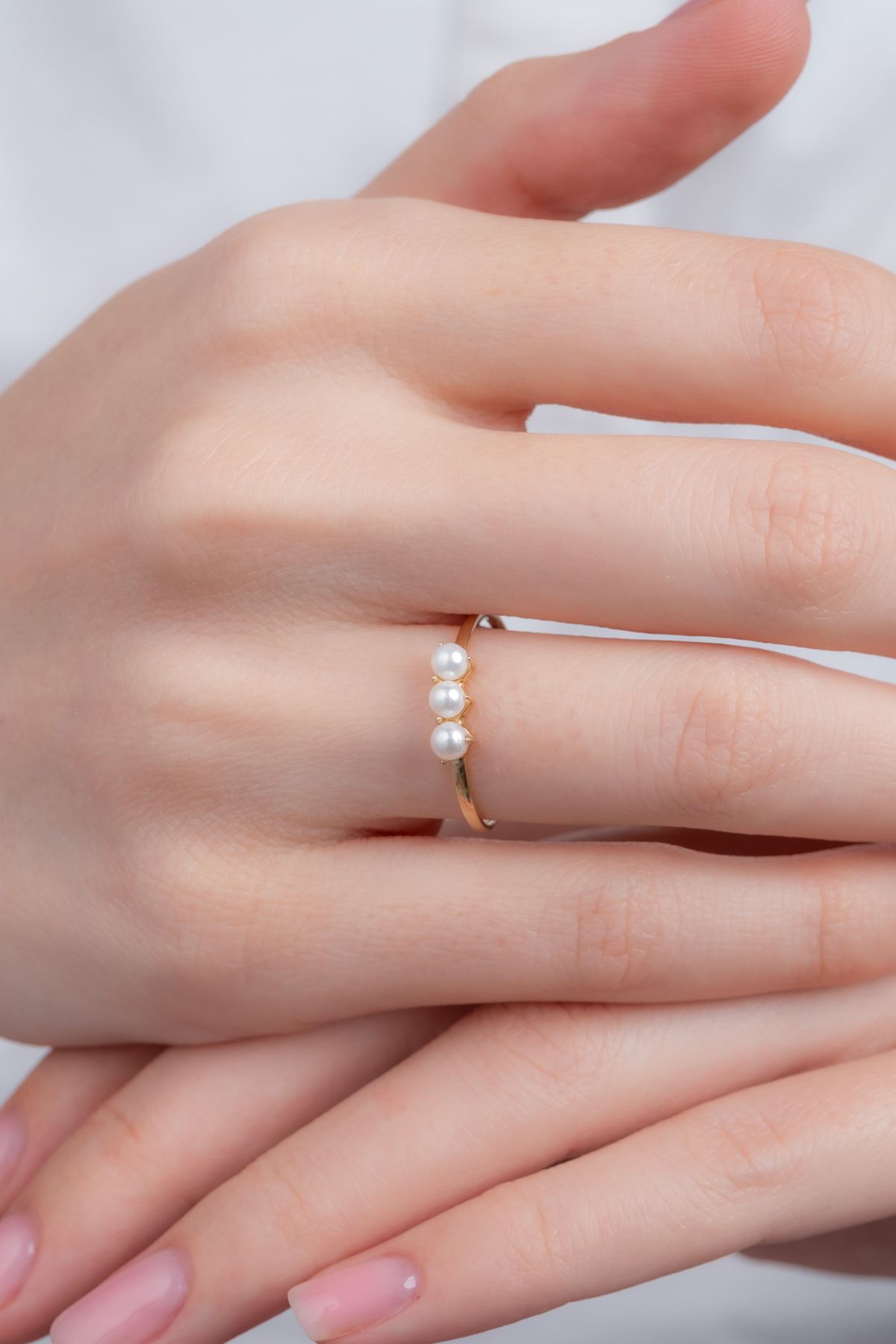 14 Ayar Altın İnci Taşlı Minimal Yüzük kaliteli işçiliği ile güvenle alışveriş yapabileceğiniz