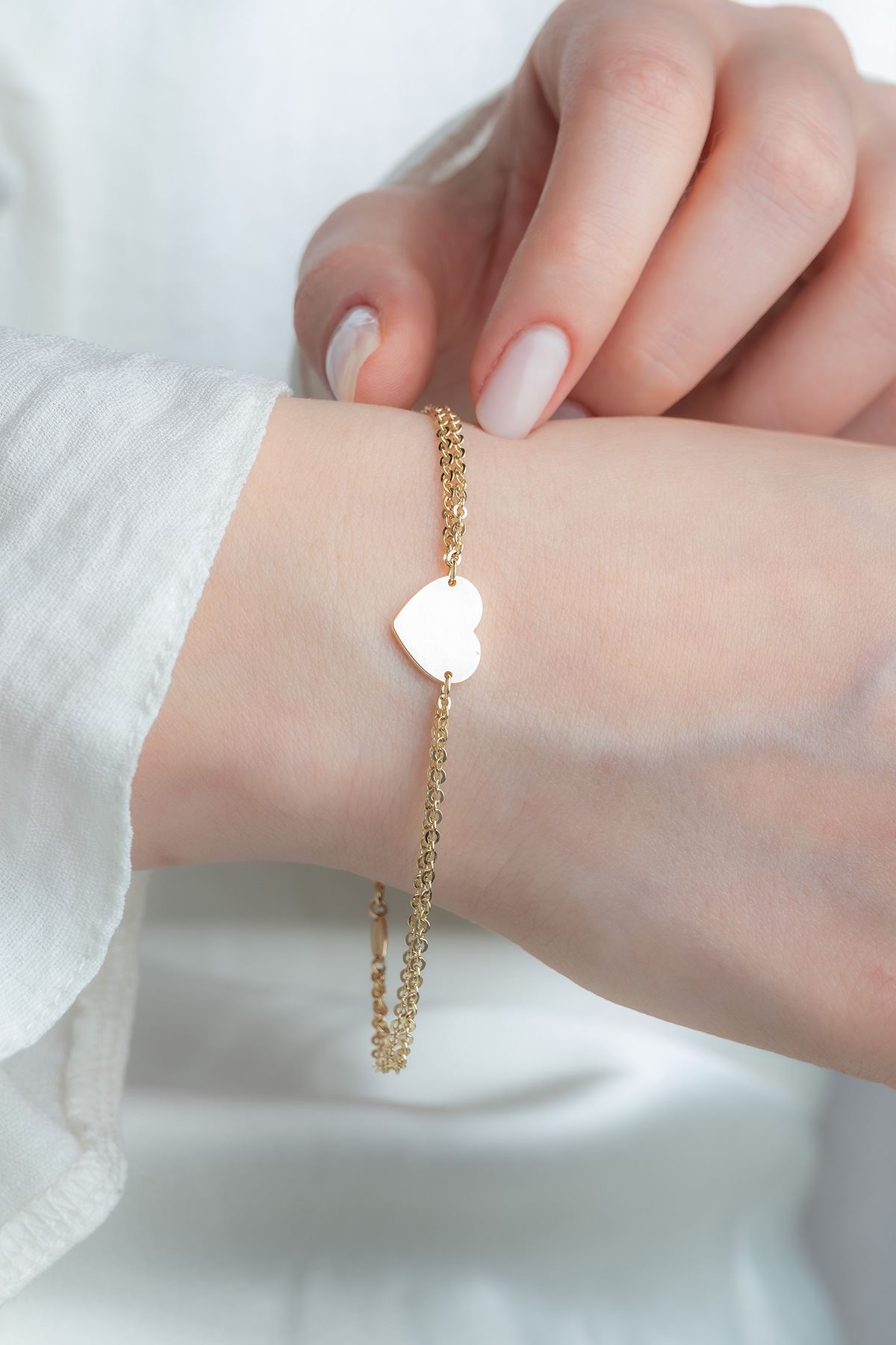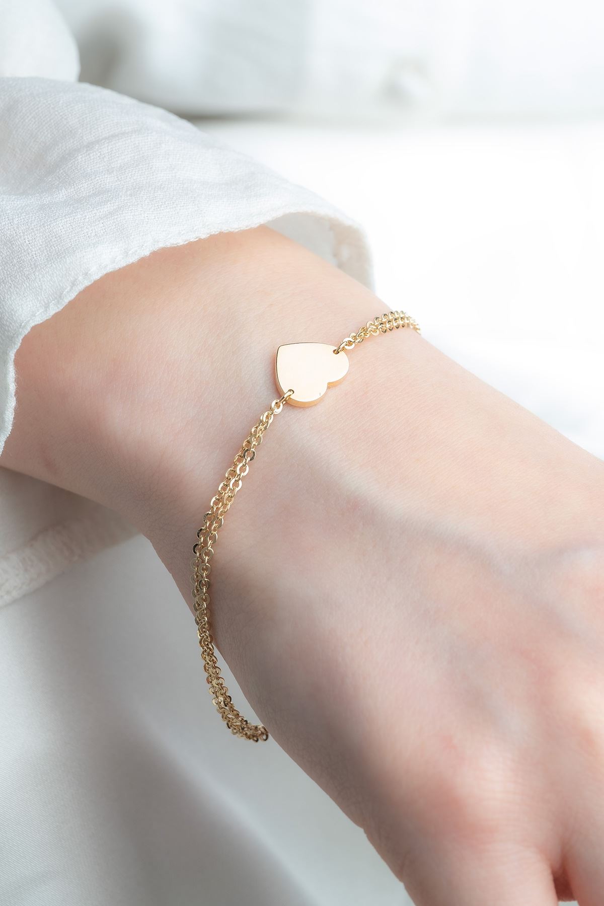 14 Ayar Altın Kalpli İnce Bileklik kaliteli işçiliği ile güvenle alışveriş yapabileceğiniz