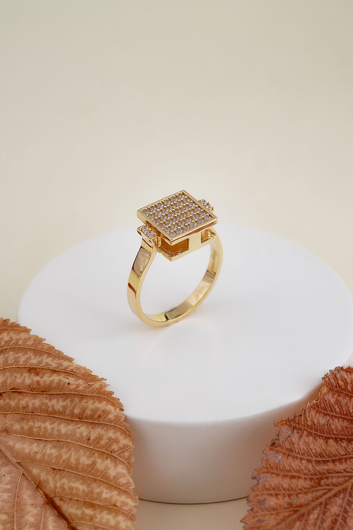14 Ayar Altın Kare Tasarım Taşlı Yüzük kaliteli işçiliği ile güvenle alışveriş yapabileceğiniz