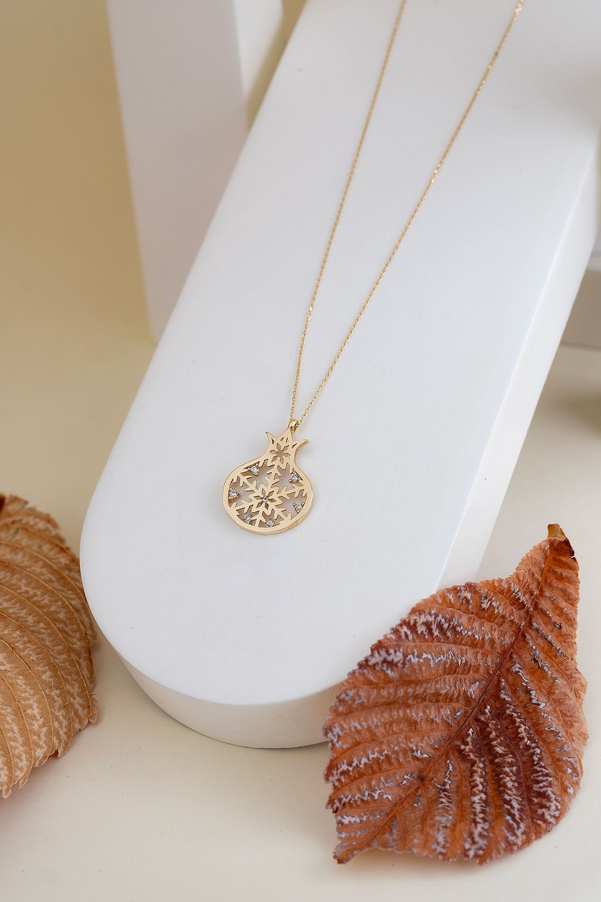 14 Ayar Altın Kartanesi Figürlü Nar Kolye kaliteli işçiliği ile güvenle alışveriş yapabileceğiniz