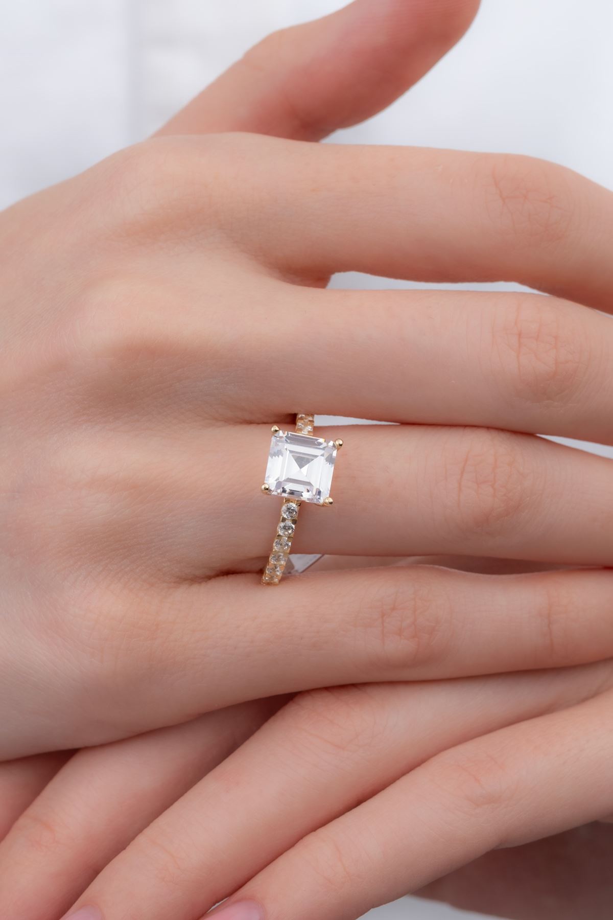 14 Ayar Altın Kenarları Taşlı Baget Yüzük kaliteli işçiliği ile güvenle alışveriş yapabileceğiniz