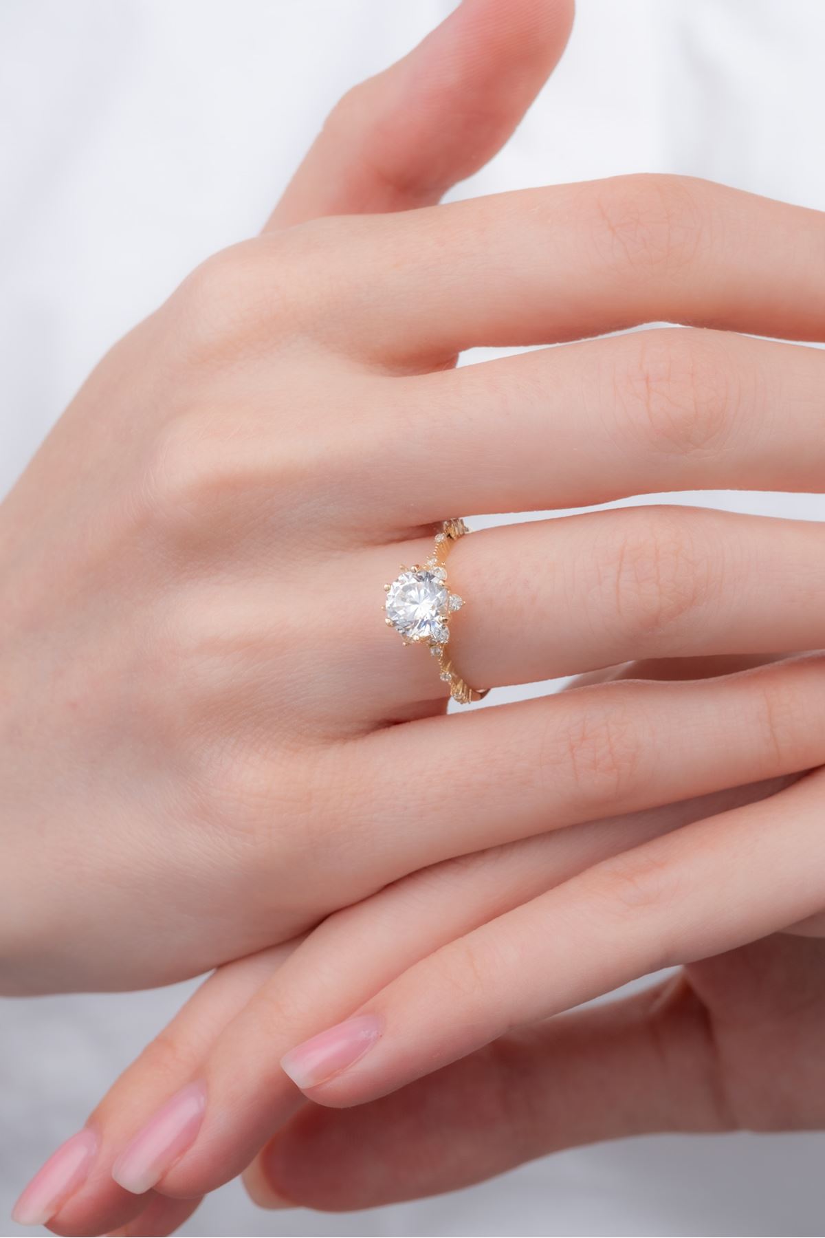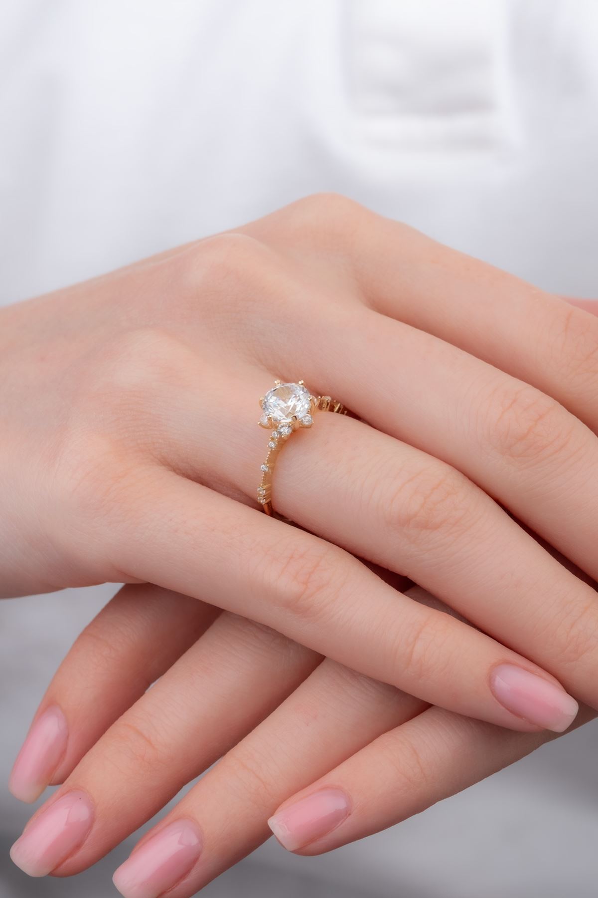14 Ayar Altın Kenarları Taşlı Lotus Tektaş Yüzük kaliteli işçiliği ile güvenle alışveriş yapabileceğiniz