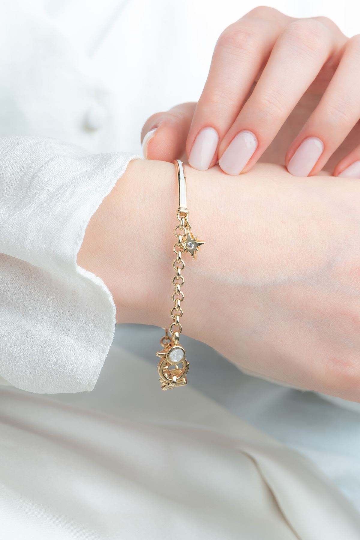Günlük kombinlerinize uyum sağlayacak olan 14 Ayar Altın Kutup Yıldızı Charmlı Bileklik ile dikkatleri üzerinize çekin. Her an sizi tamamlayacak 14 Ayar Altın Kutup Yıldızı Charmlı Bileklik sizin için vazgeçilmez bir parça olacaktır. Şıklığınızı taçlandırdığımız özgün tasarımlarımız ile kendinizi şımartın.