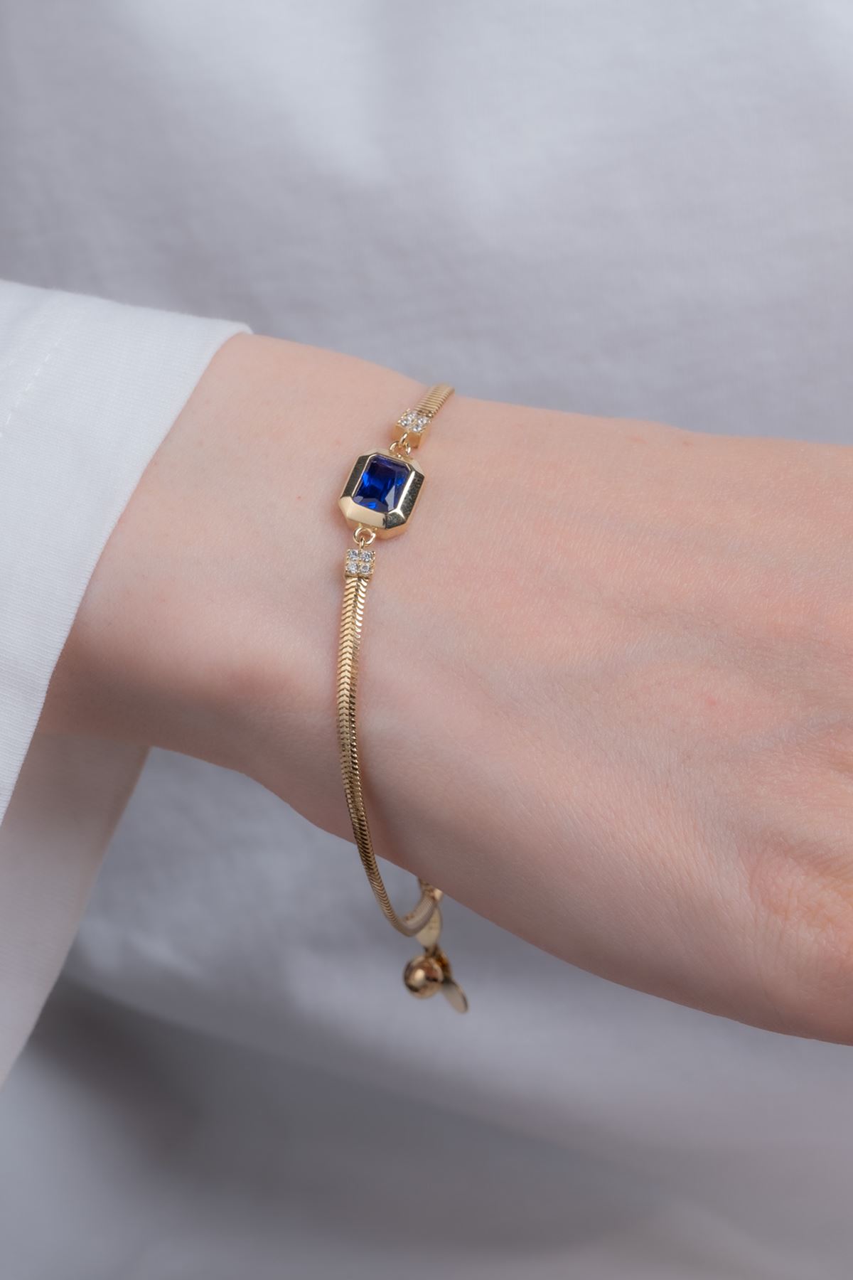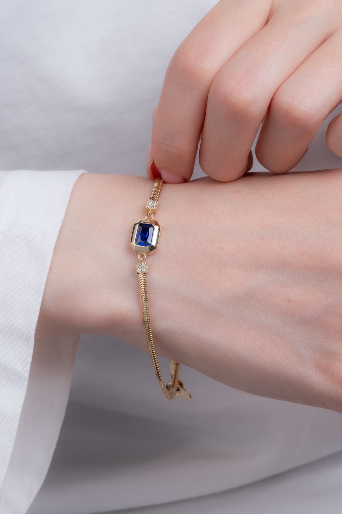 14 Ayar Altın Mavi Baget Taşlı Bileklik kaliteli işçiliği ile güvenle alışveriş yapabileceğiniz