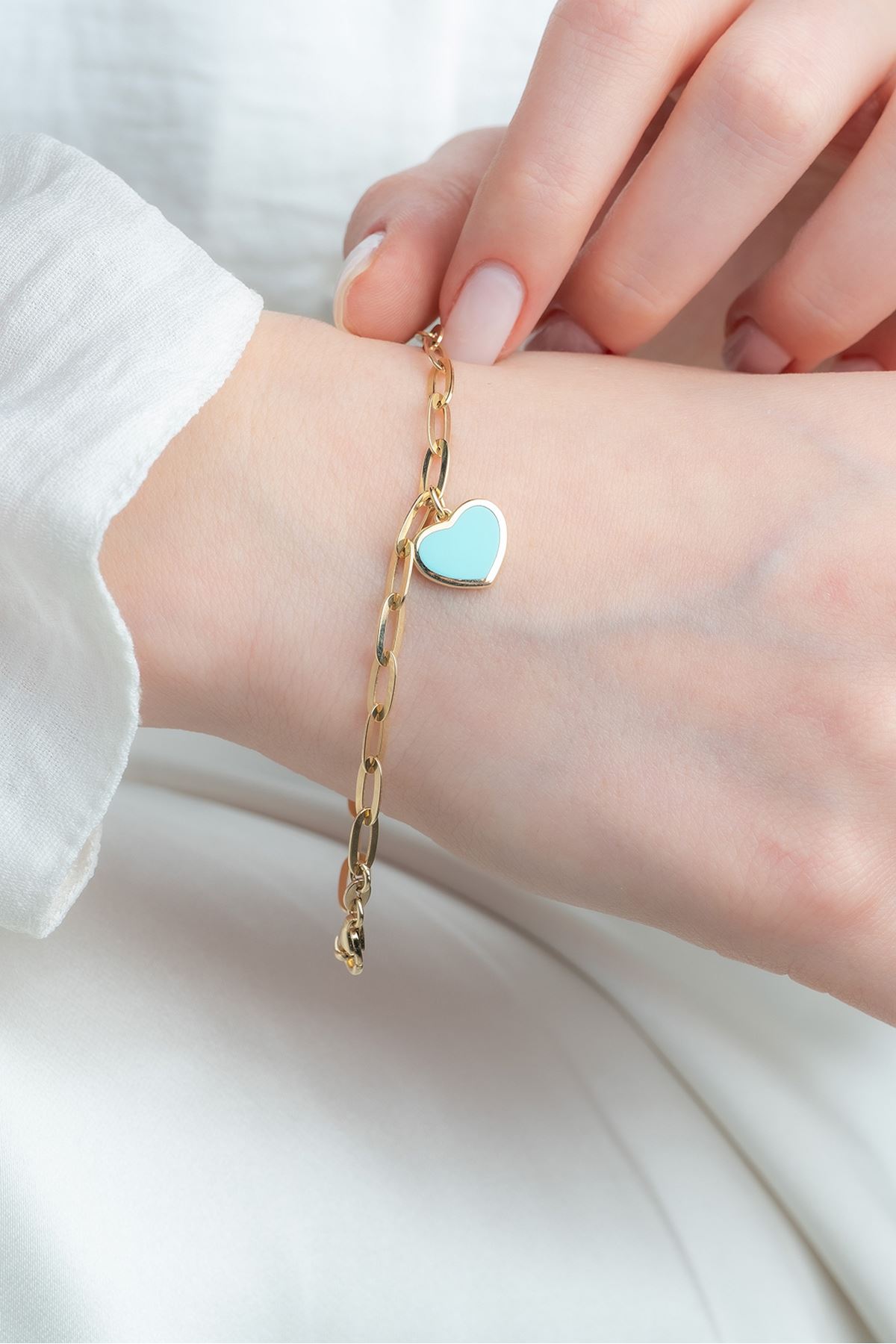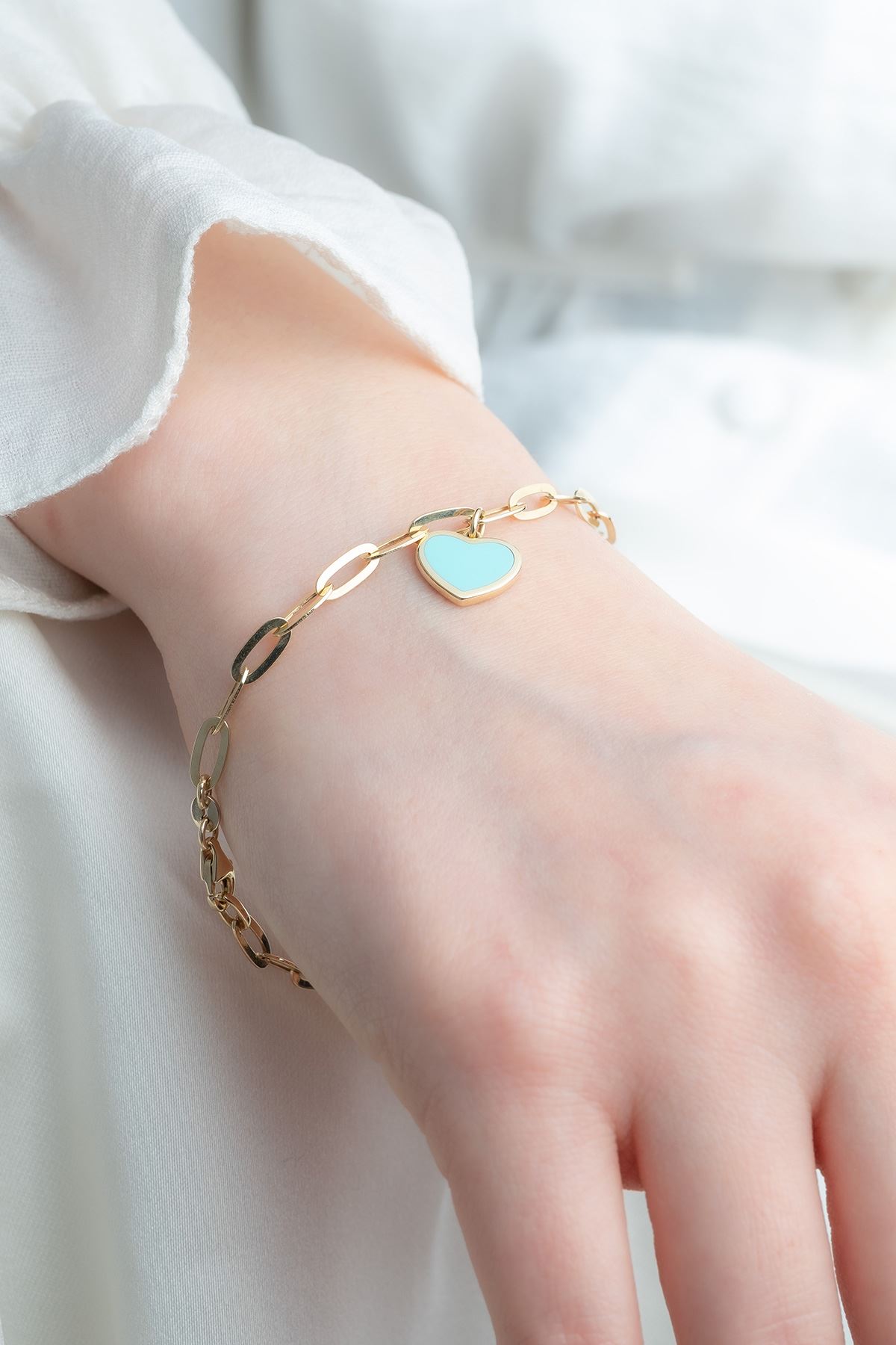 14 Ayar Altın Mavi Kalpli Cetaş Bileklik kaliteli işçiliği ile güvenle alışveriş yapabileceğiniz
