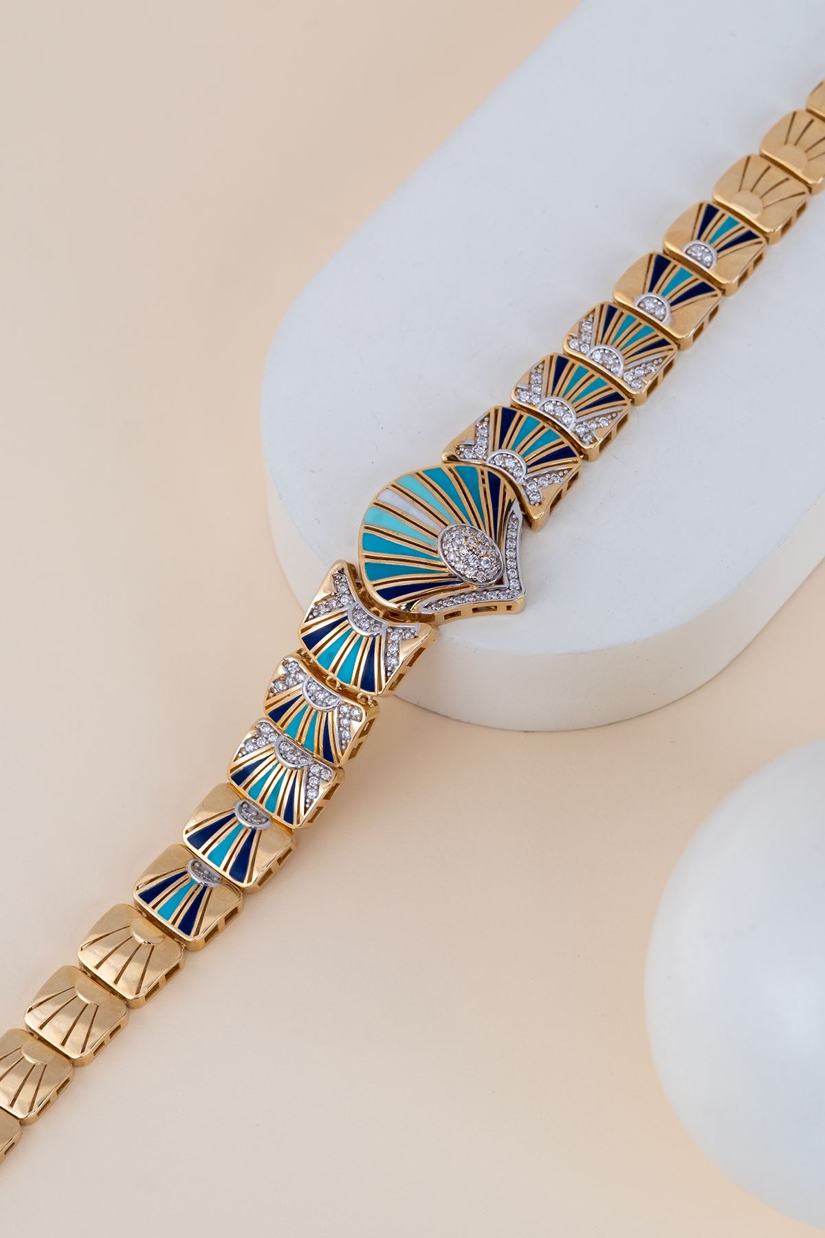 Günlük kombinlerinize uyum sağlayacak olan 14 Ayar Altın Mavi Mineli Gösterişli Bileklik ile dikkatleri üzerinize çekin. Her an sizi tamamlayacak 14 Ayar Altın Mavi Mineli Gösterişli Bileklik sizin için vazgeçilmez bir parça olacaktır. Şıklığınızı taçlandırdığımız özgün tasarımlarımız ile kendinizi şımartın.