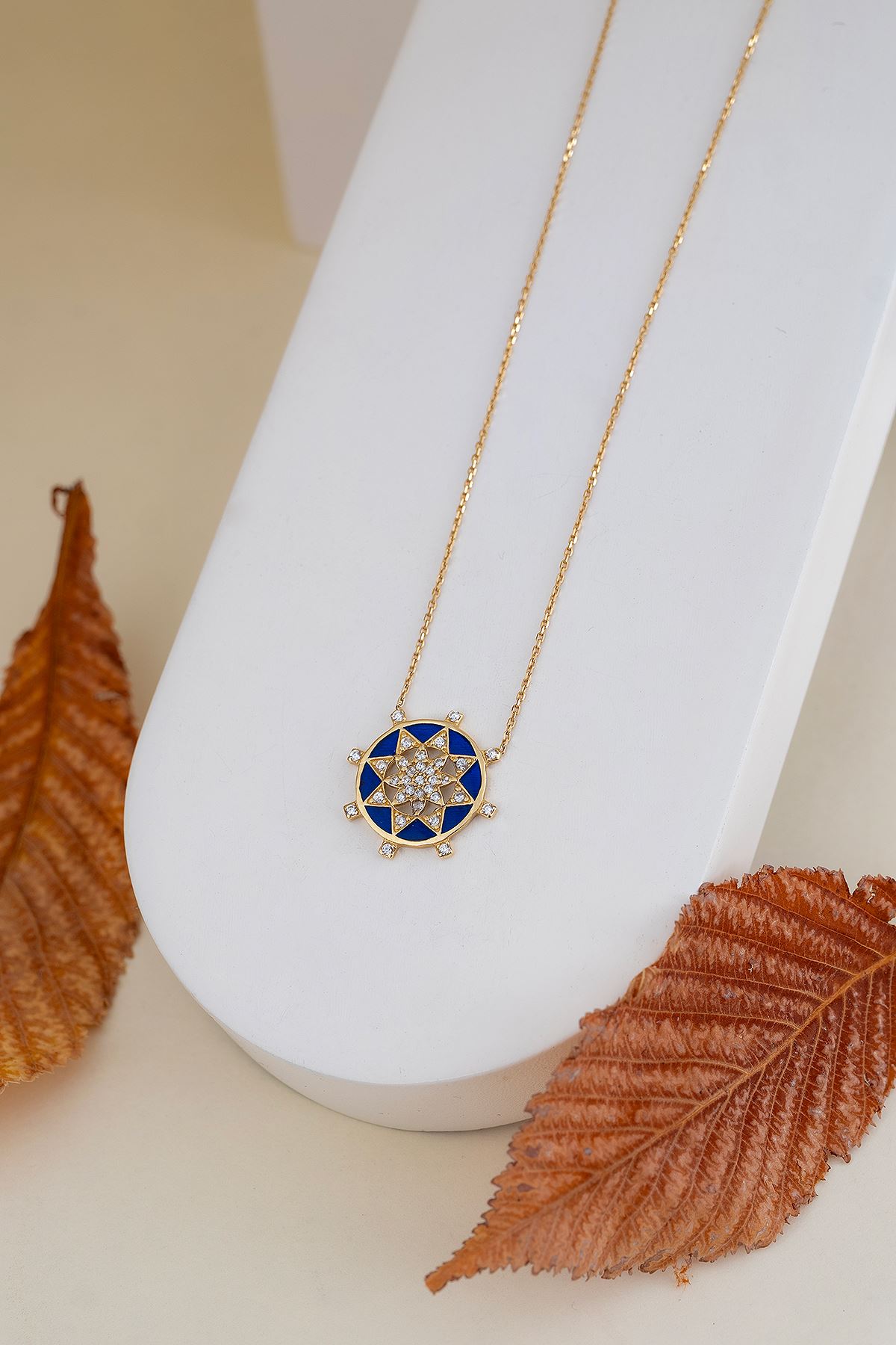 14 Ayar Altın Mavi Mineli Yıldız Kolye kaliteli işçiliği ile güvenle alışveriş yapabileceğiniz