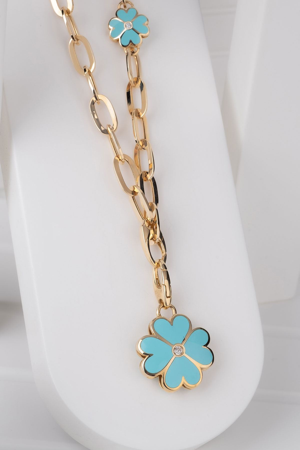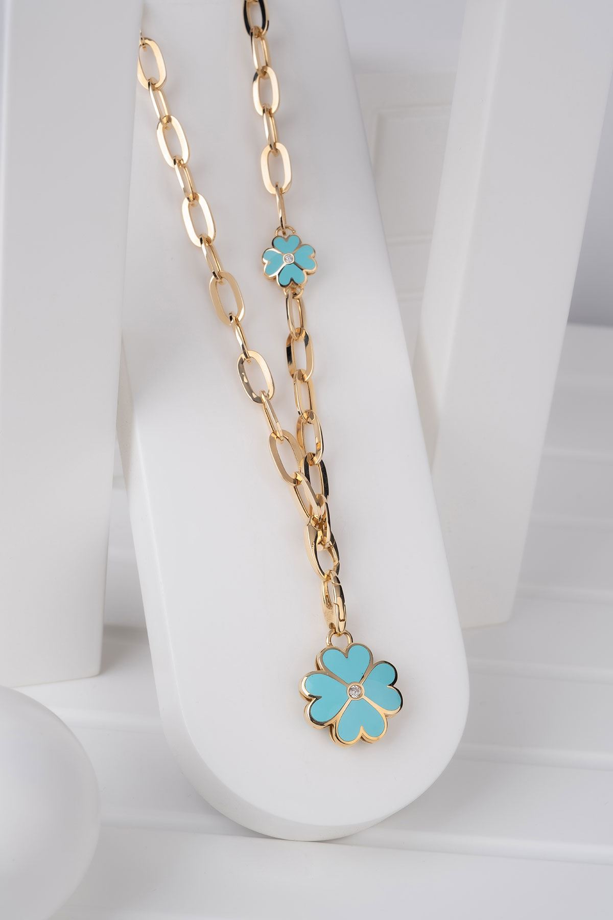 14 Ayar Altın Mavi Yonca Gerdanlık kaliteli işçiliği ile güvenle alışveriş yapabileceğiniz