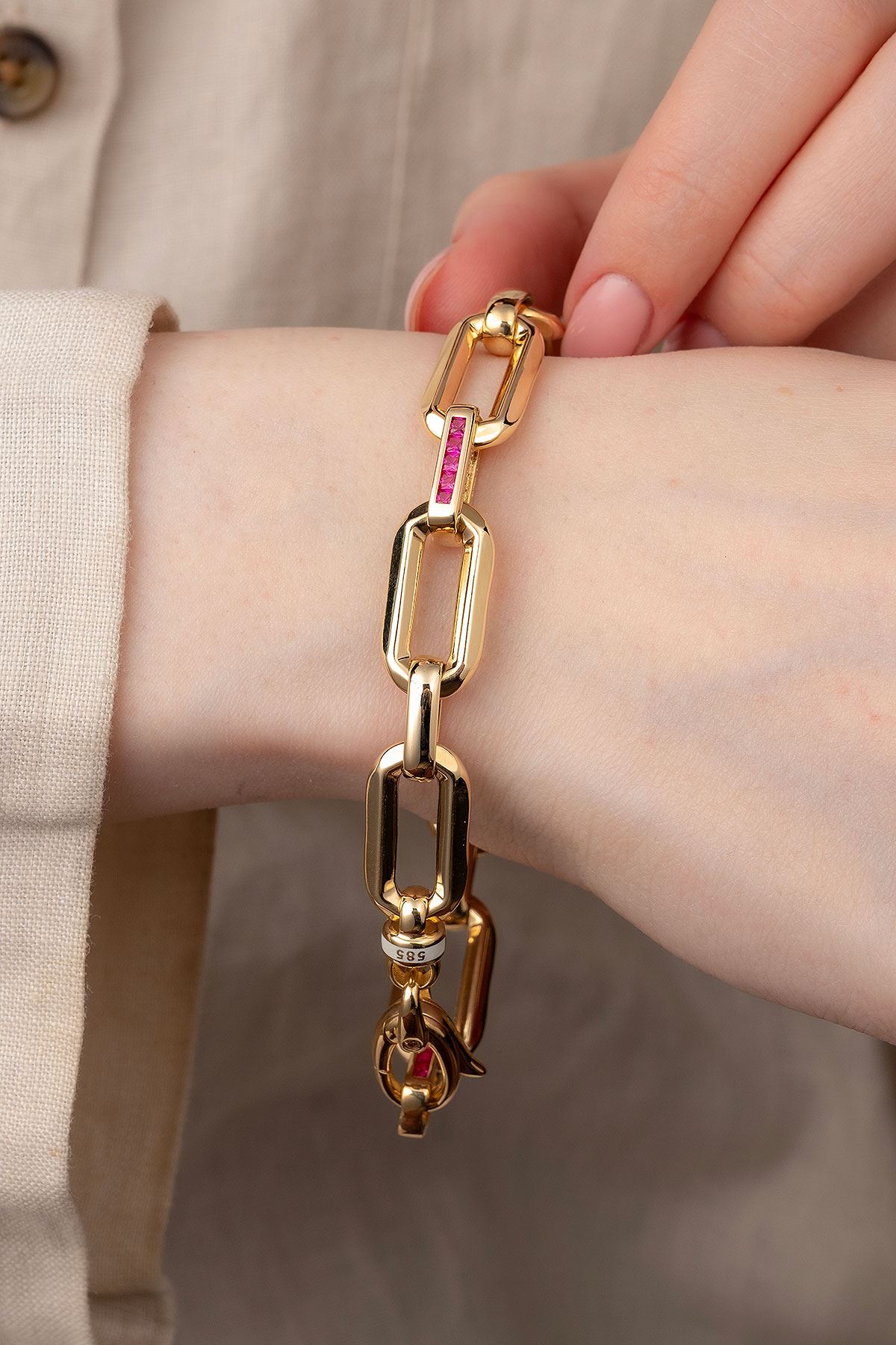 14 Ayar Altın Pembe Taşlı Ataç Model Bileklik kaliteli işçiliği ile güvenle alışveriş yapabileceğiniz