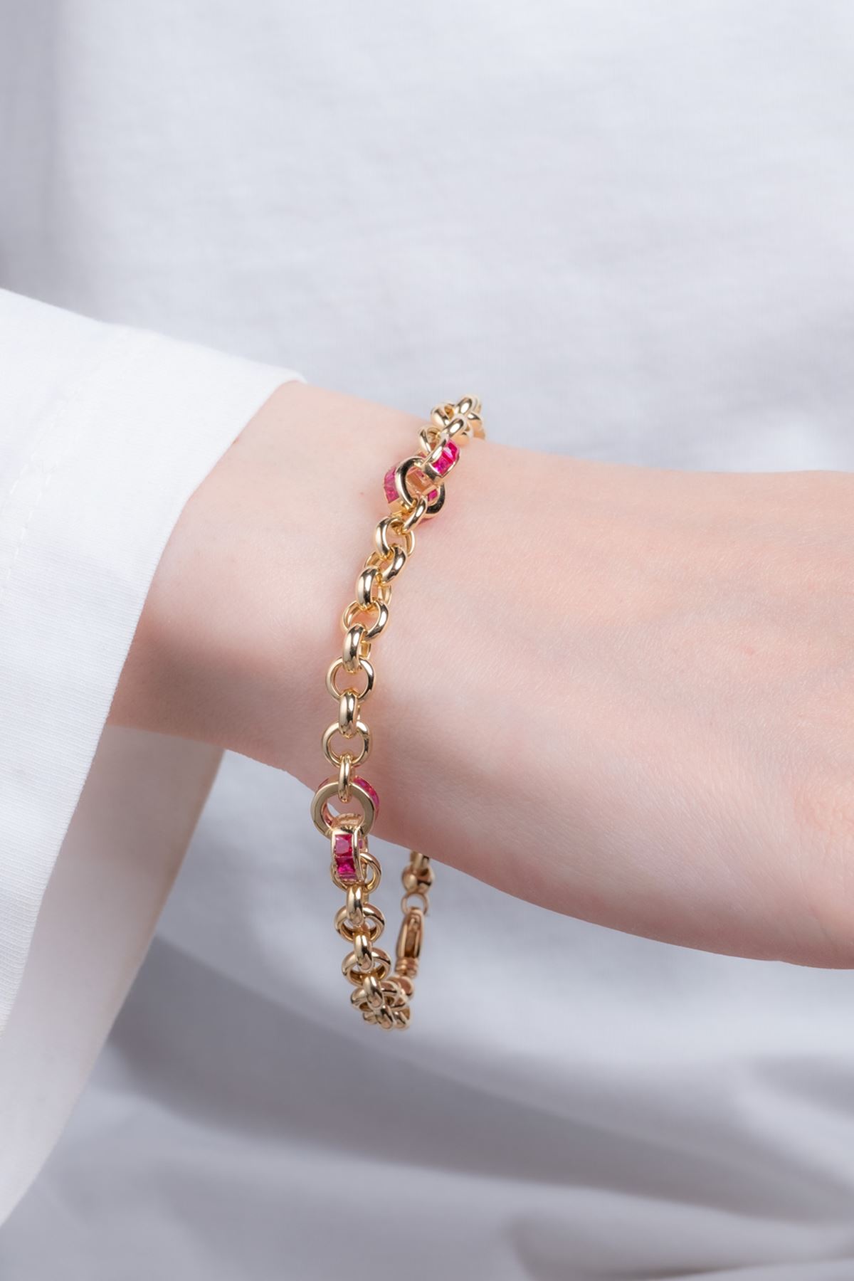 14 Ayar Altın Pembe Taşlı Doch Bileklik kaliteli işçiliği ile güvenle alışveriş yapabileceğiniz
