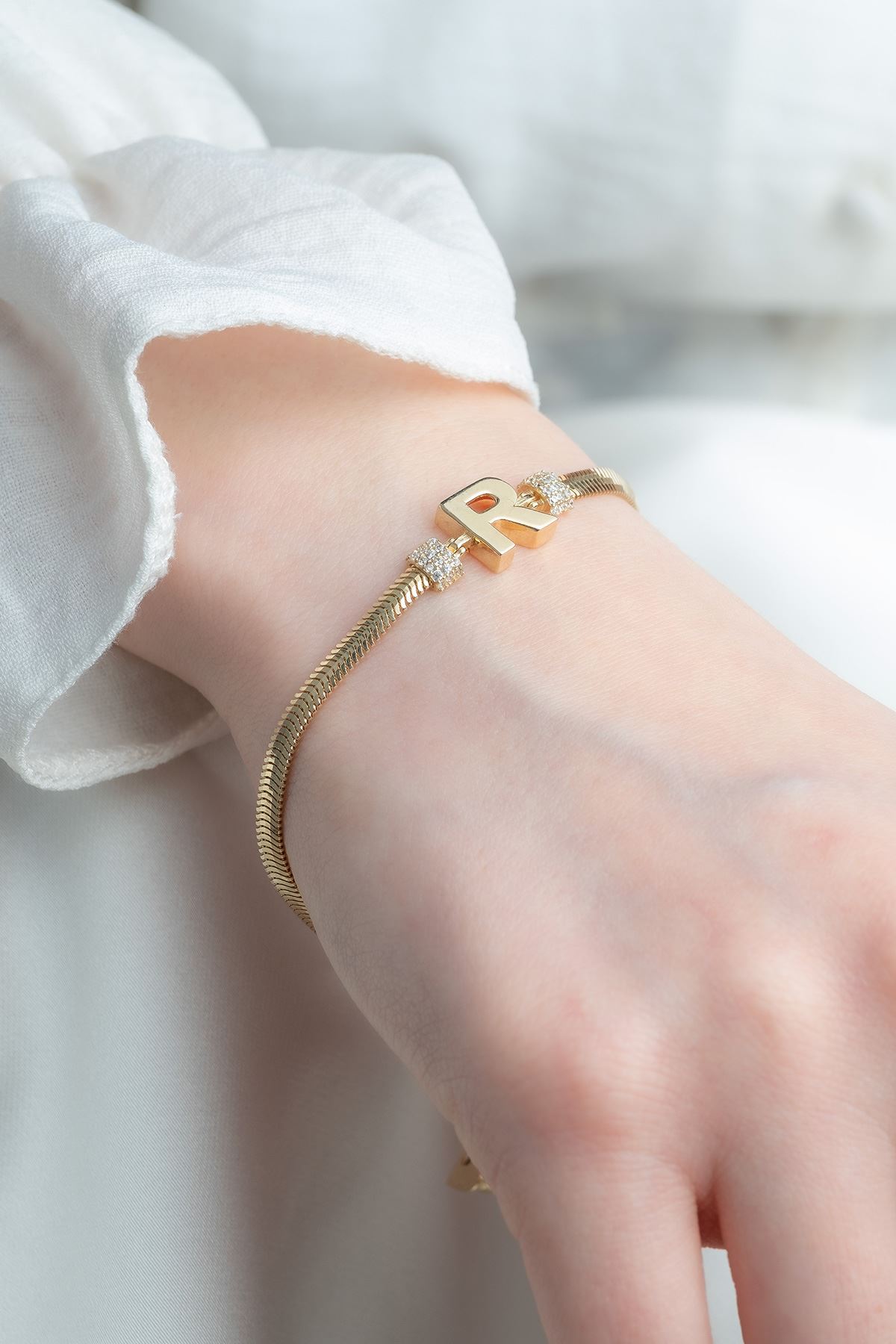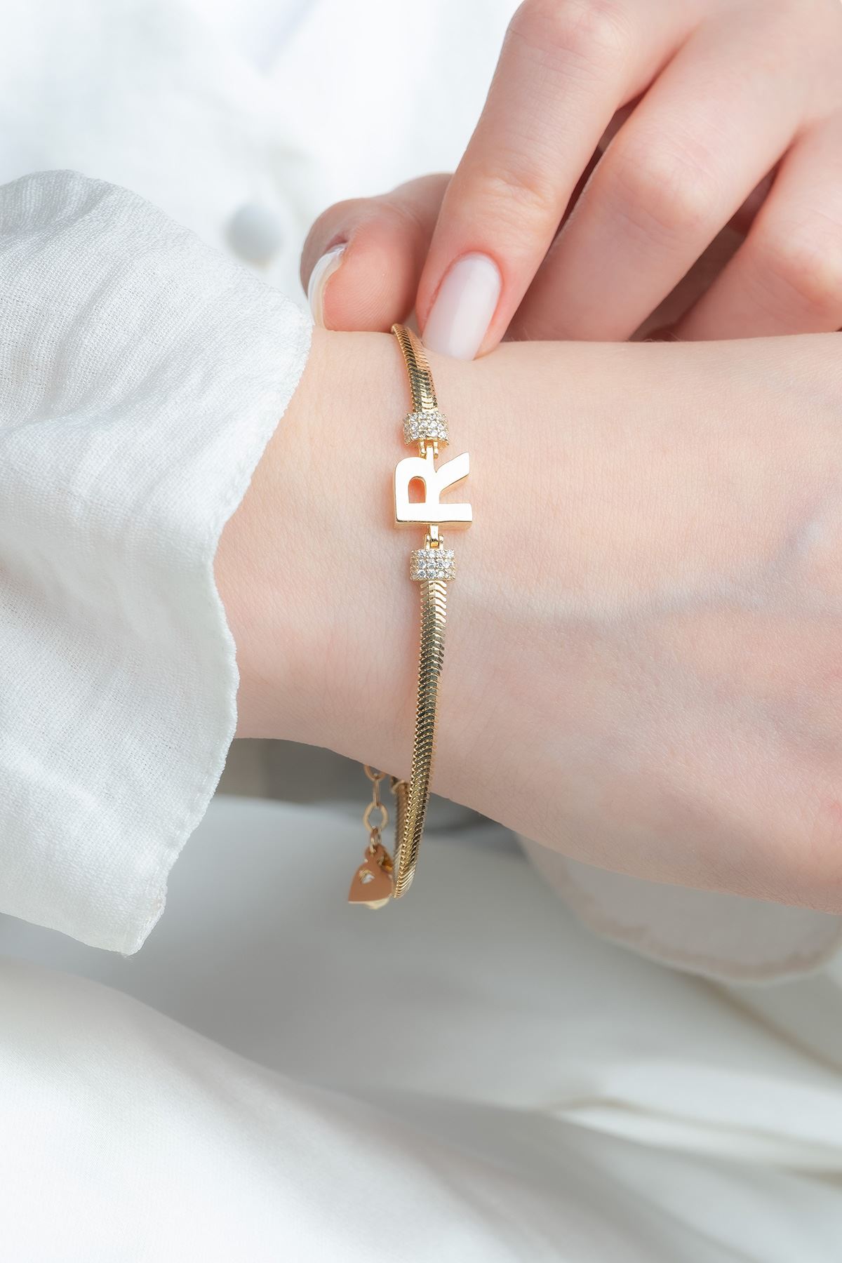 14 Ayar Altın R Harfli İtalyan Zincirli Bileklik kaliteli işçiliği ile güvenle alışveriş yapabileceğiniz