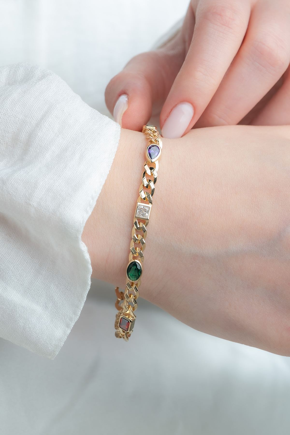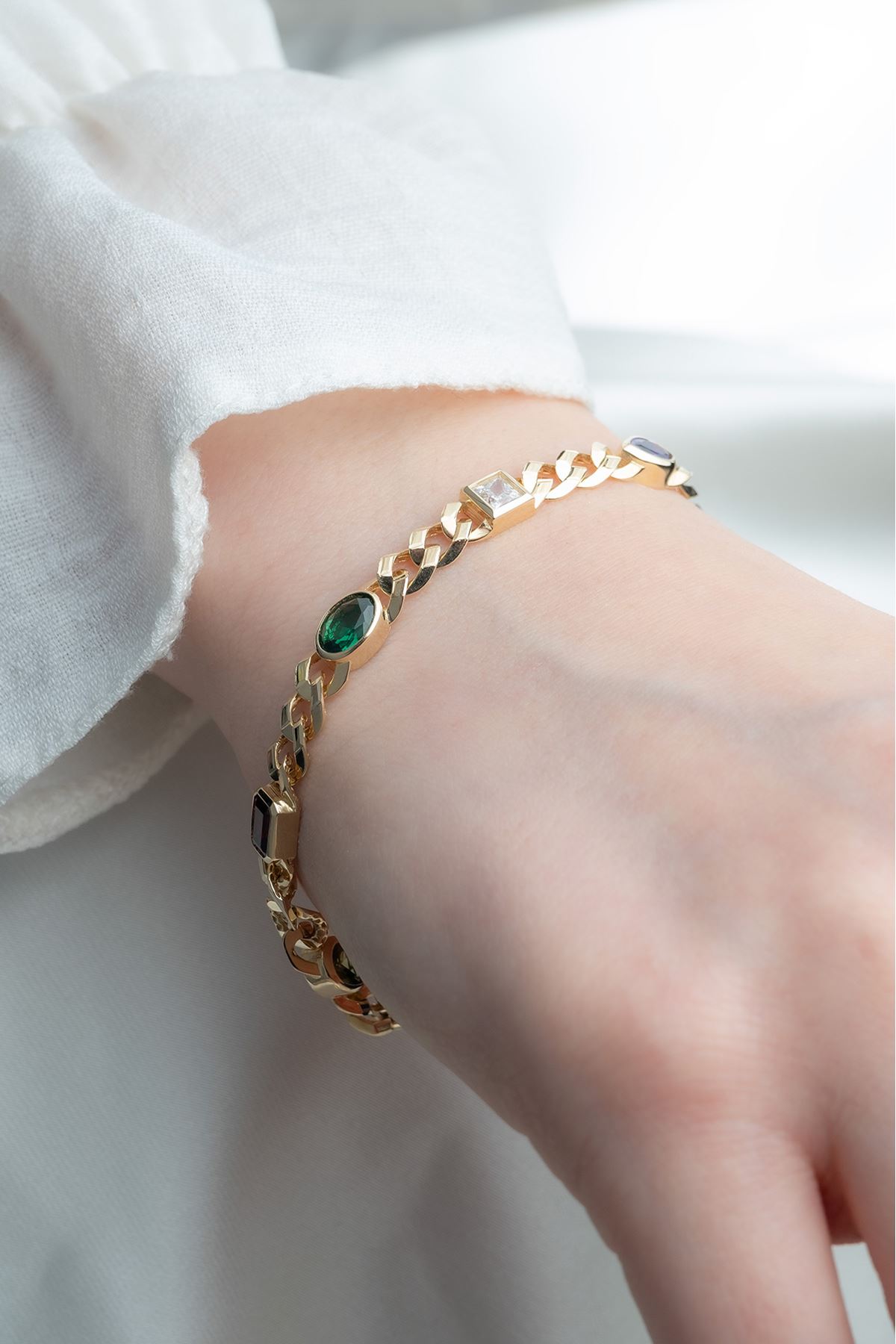 14 Ayar Altın Renkli Taşlı Gurmet Bileklik kaliteli işçiliği ile güvenle alışveriş yapabileceğiniz