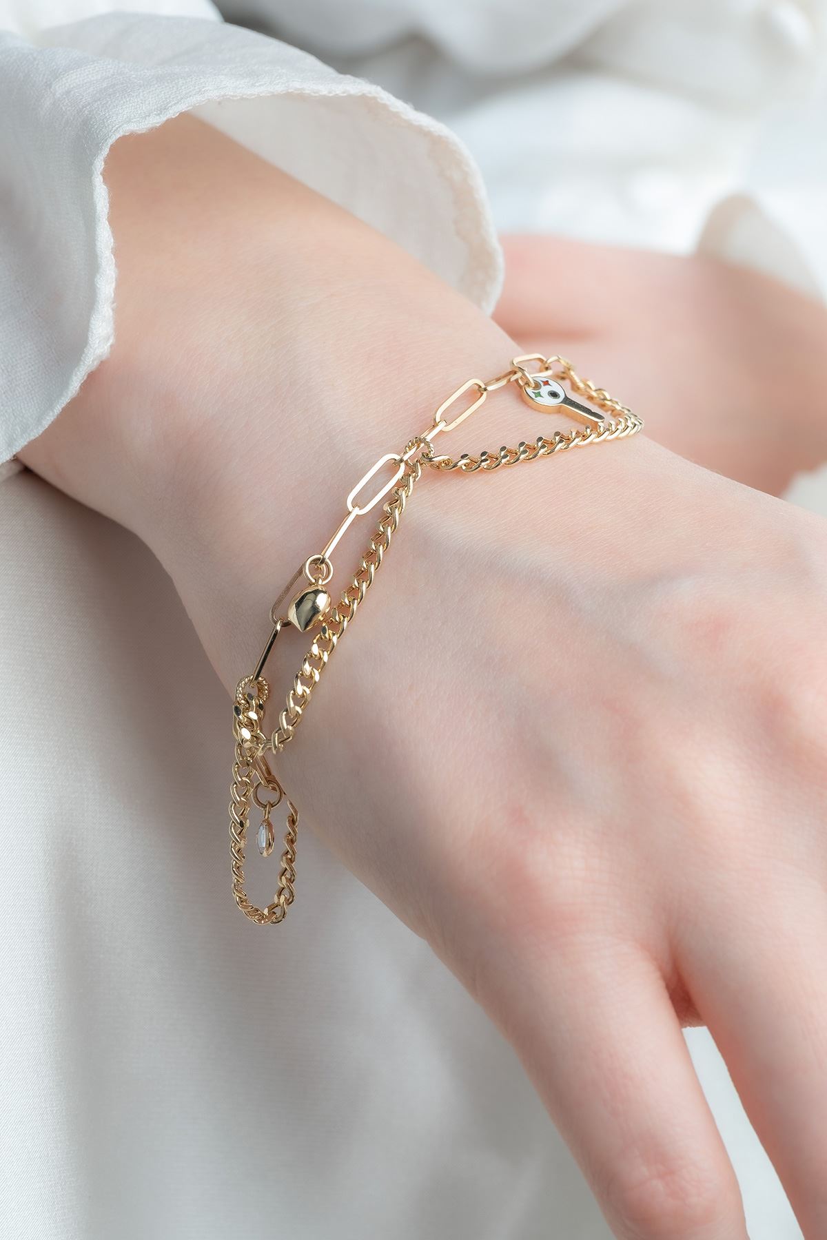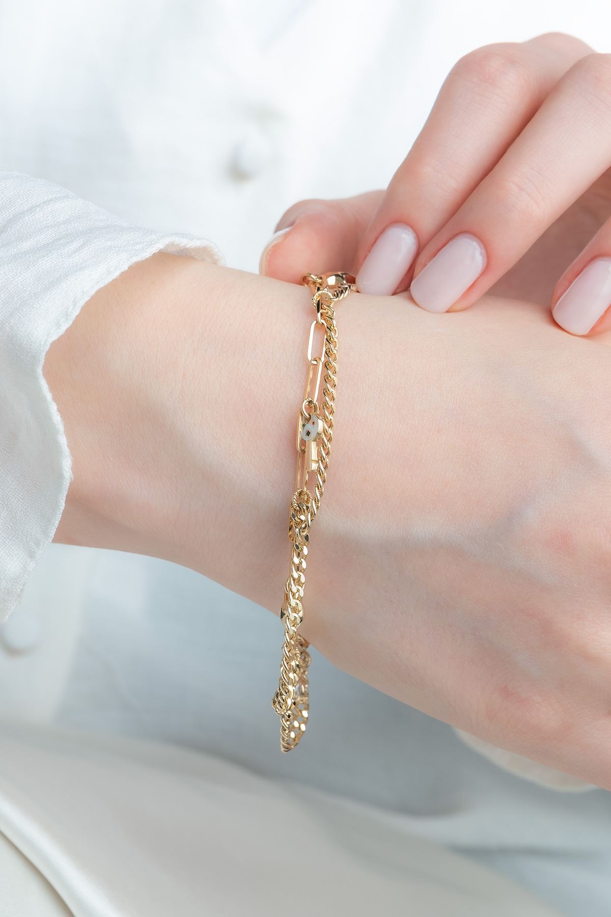 Günlük kombinlerinize uyum sağlayacak olan 14 Ayar Altın Şans Sallantılı Bileklik ile dikkatleri üzerinize çekin. Her an sizi tamamlayacak 14 Ayar Altın Şans Sallantılı Bileklik sizin için vazgeçilmez bir parça olacaktır. Şıklığınızı taçlandırdığımız özgün tasarımlarımız ile kendinizi şımartın.