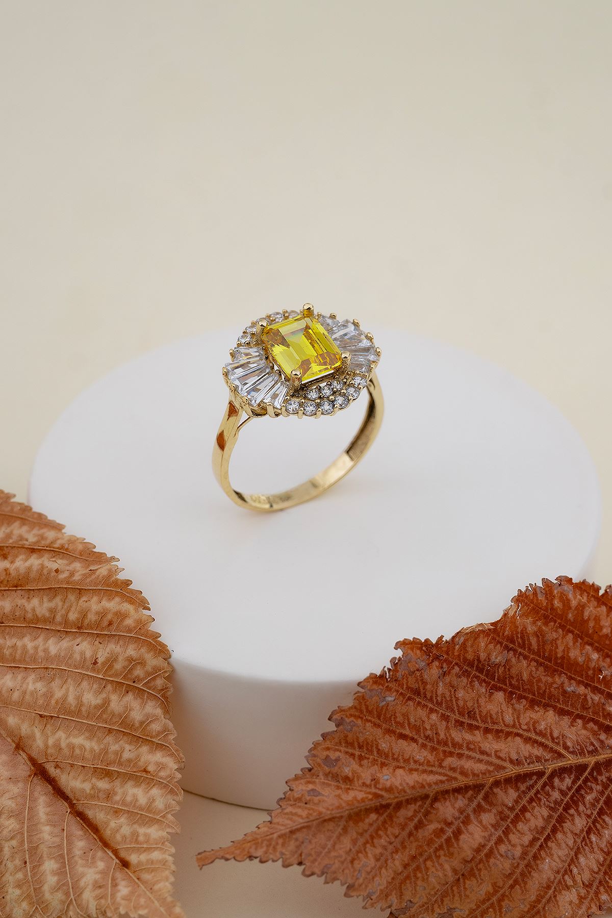 14 Ayar Altın Sarı Taşlı Baget Yüzük kaliteli işçiliği ile güvenle alışveriş yapabileceğiniz