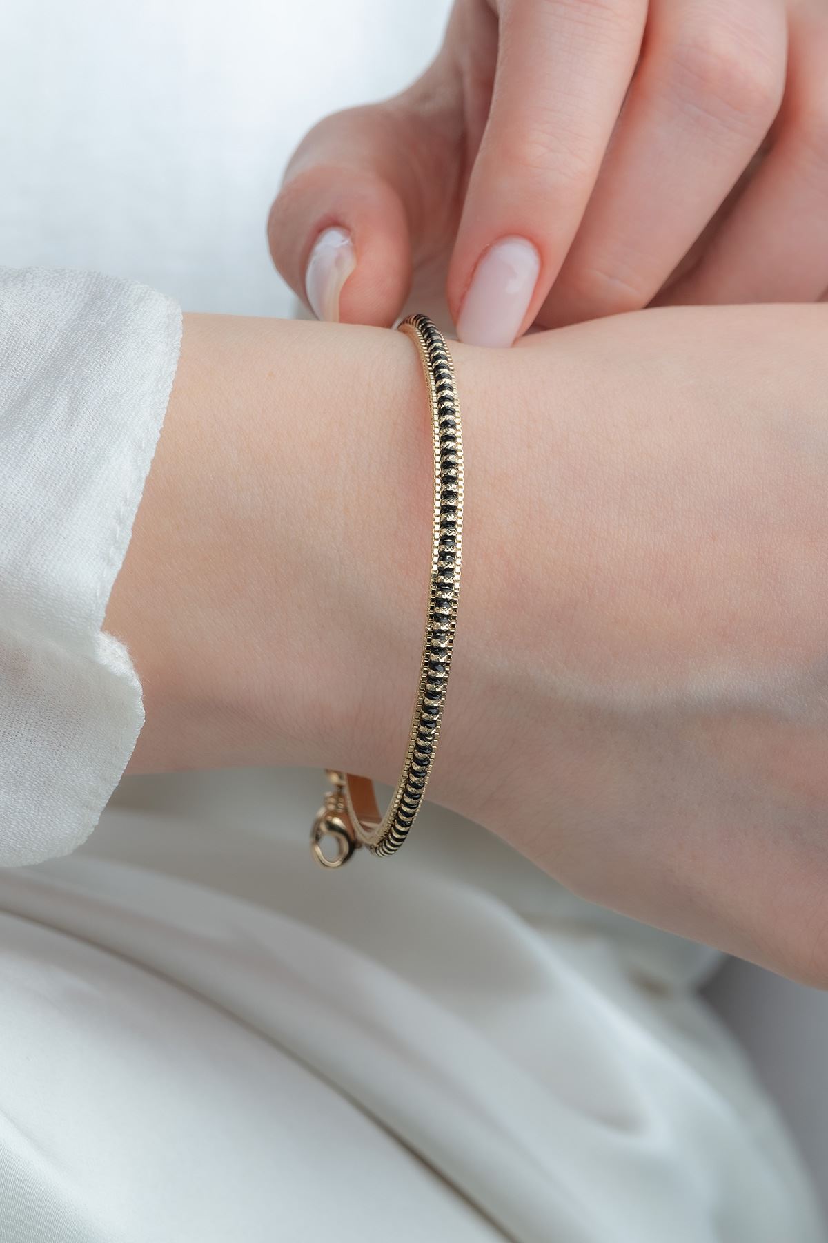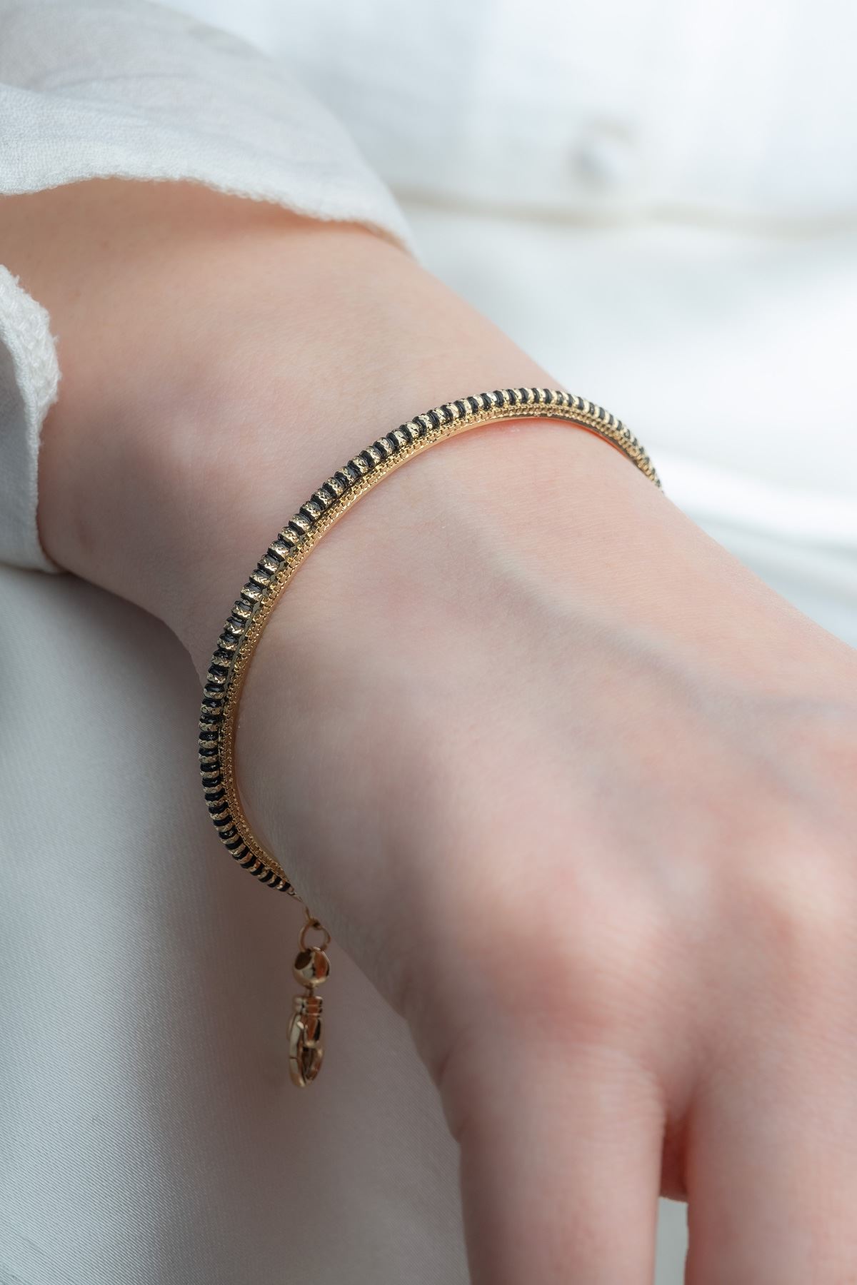 14 Ayar Altın Siyah Taşlı İnce Tasarım Bilezik kaliteli işçiliği ile güvenle alışveriş yapabileceğiniz
