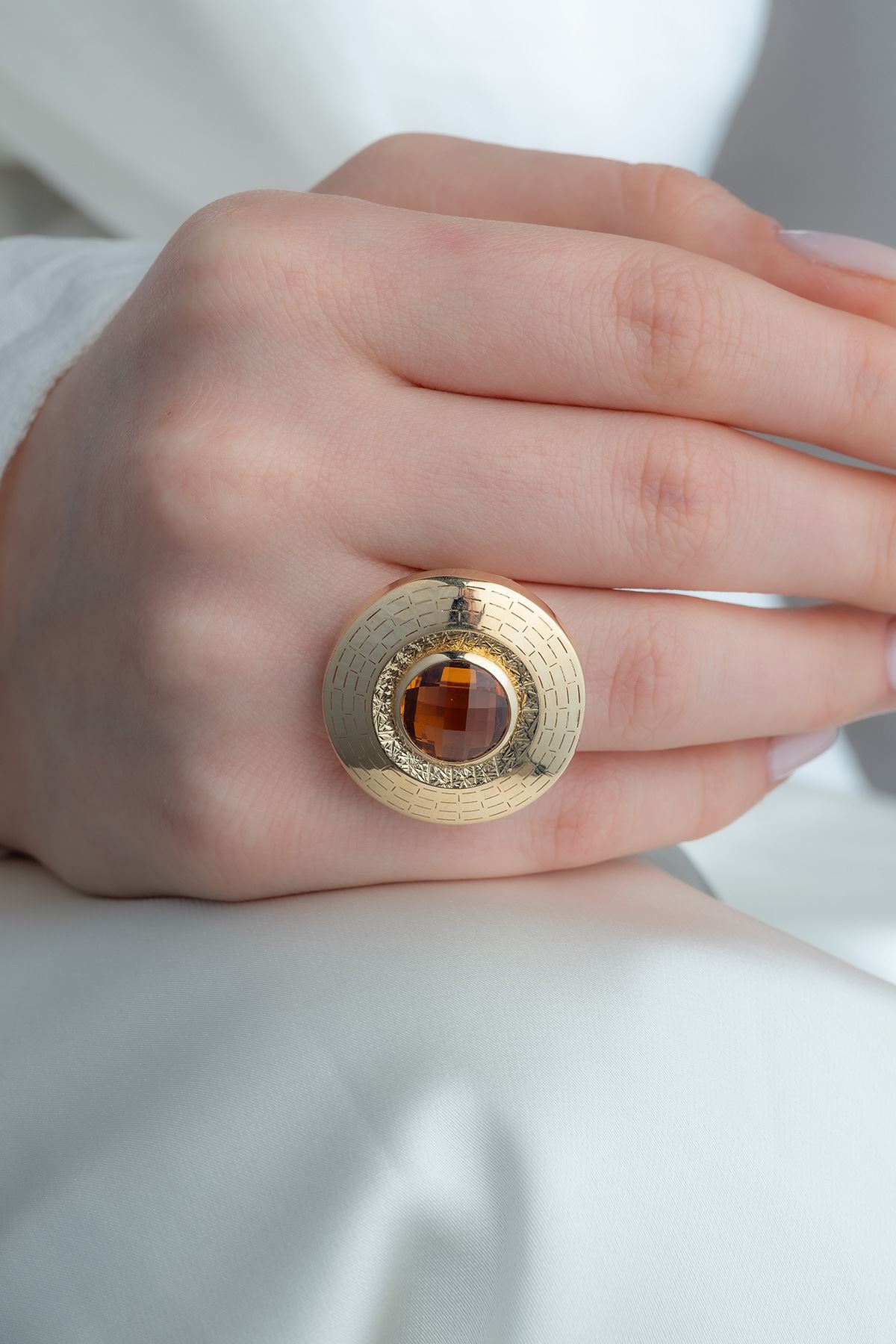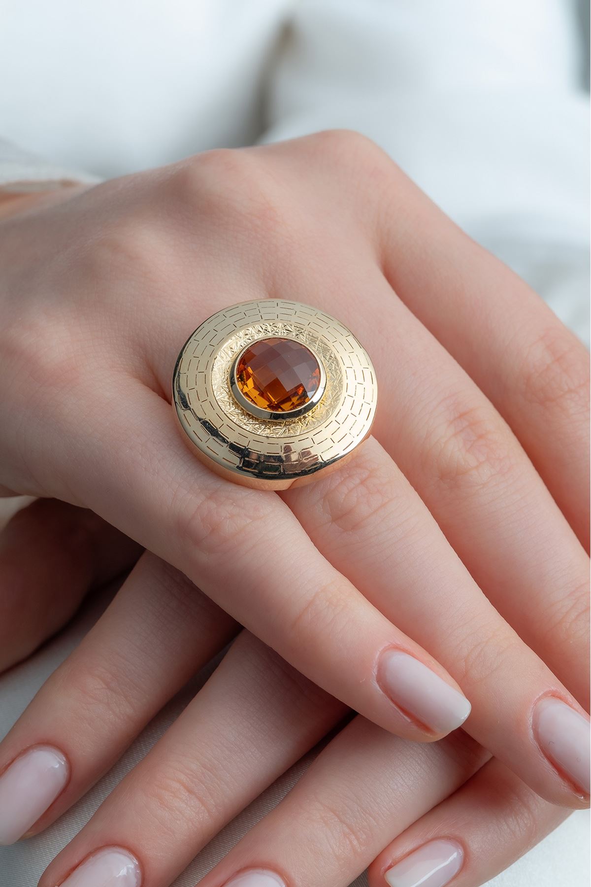 14 Ayar Altın Taşlı Büyük Yuvarlak Yüzük kaliteli işçiliği ile güvenle alışveriş yapabileceğiniz