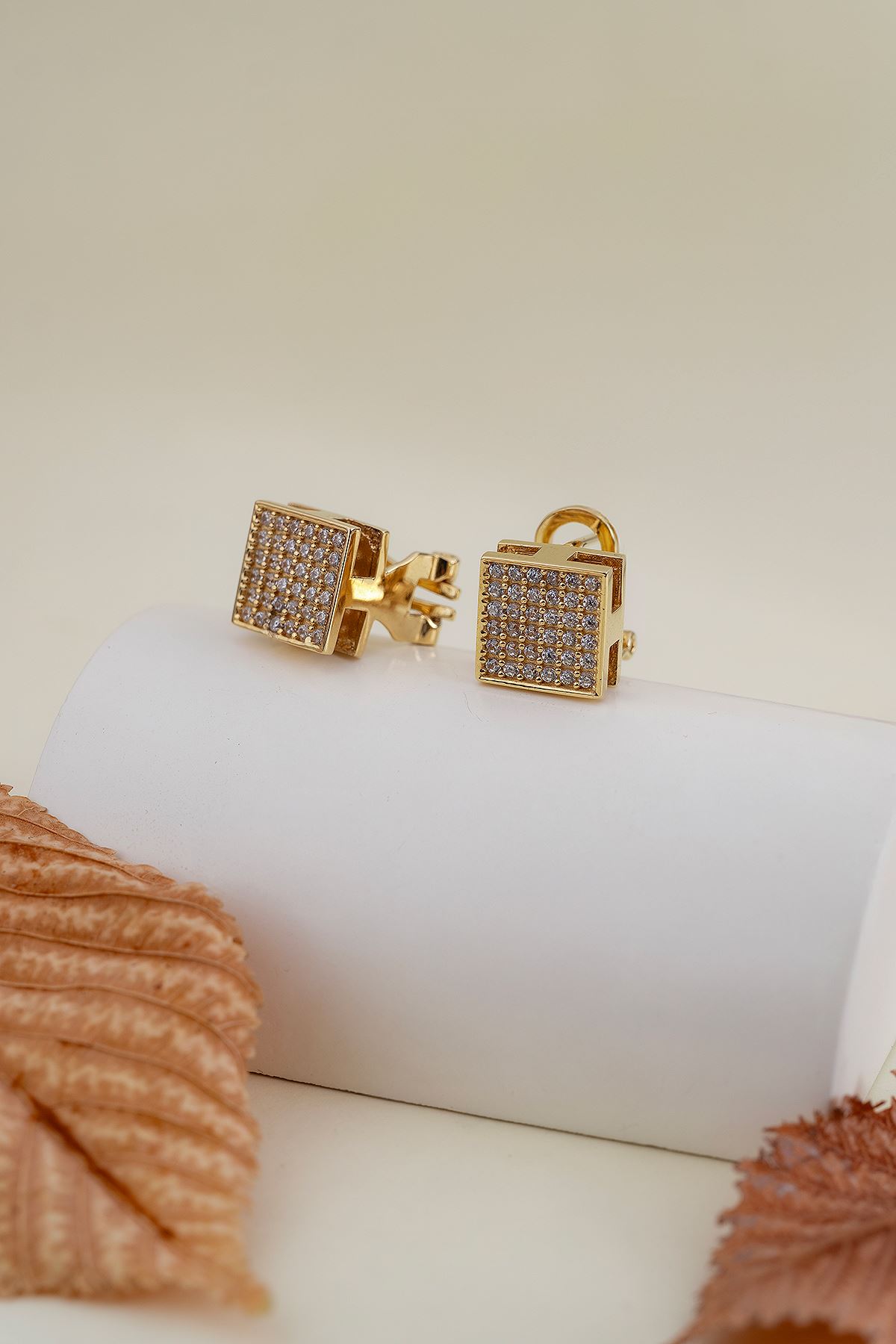 14 Ayar Altın Taşlı Kare Desen Küpe kaliteli işçiliği ile güvenle alışveriş yapabileceğiniz