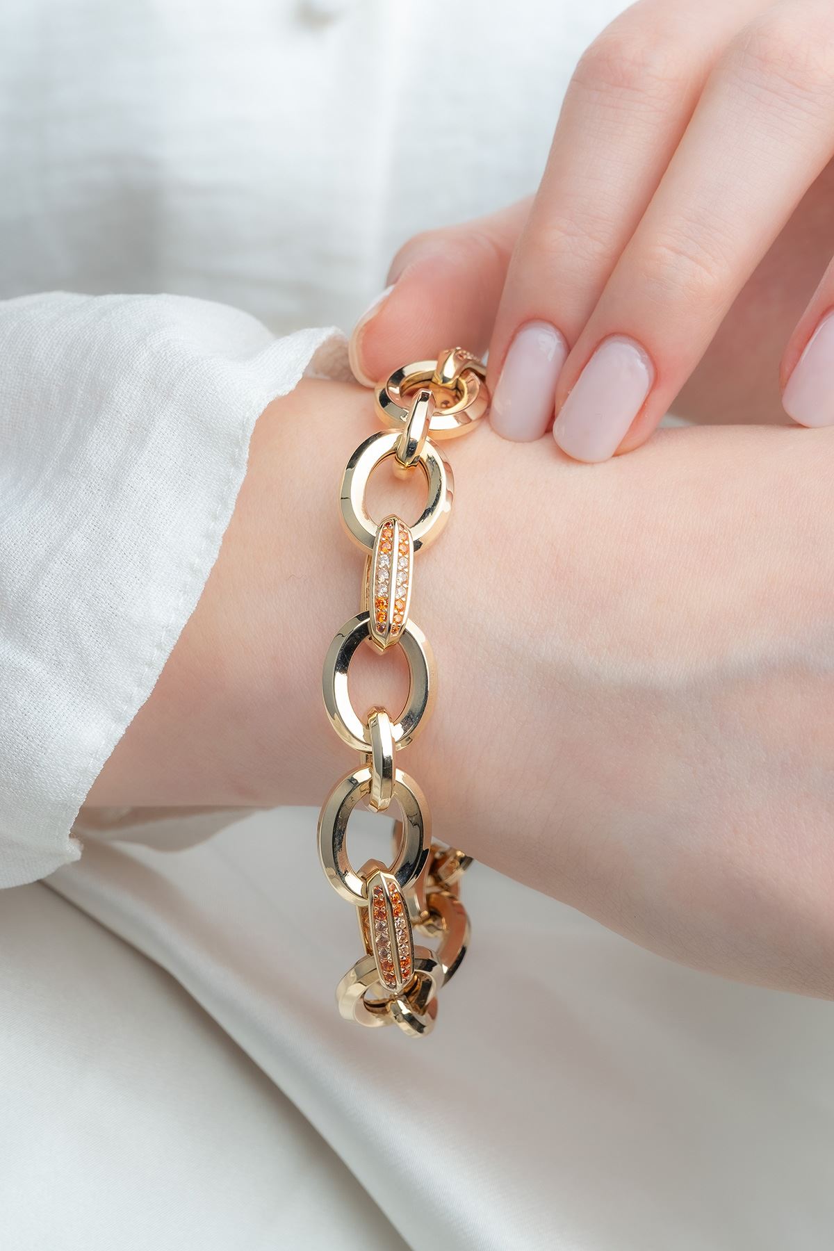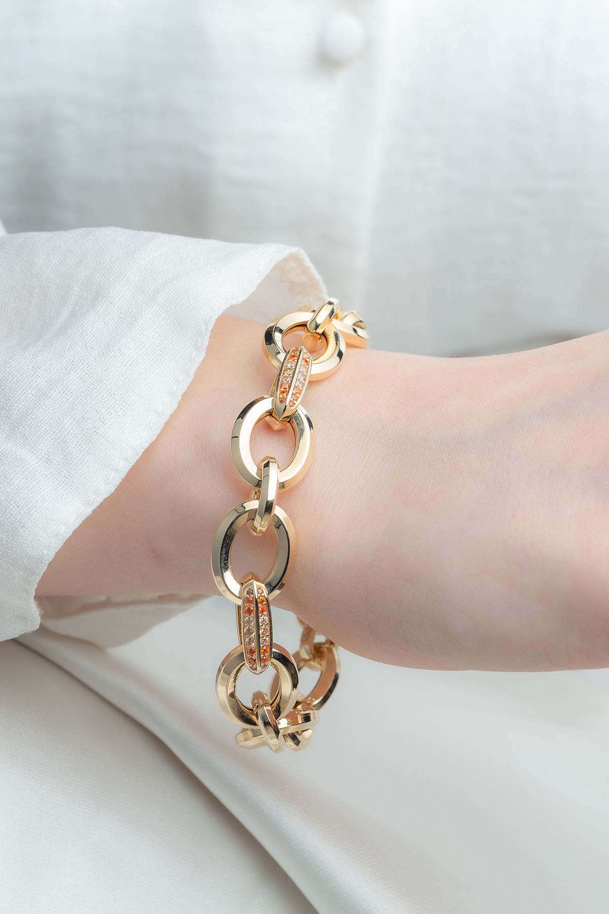 14 Ayar Altın Turuncu Taşlı Tasarım Cetaş Bileklik kaliteli işçiliği ile güvenle alışveriş yapabileceğiniz