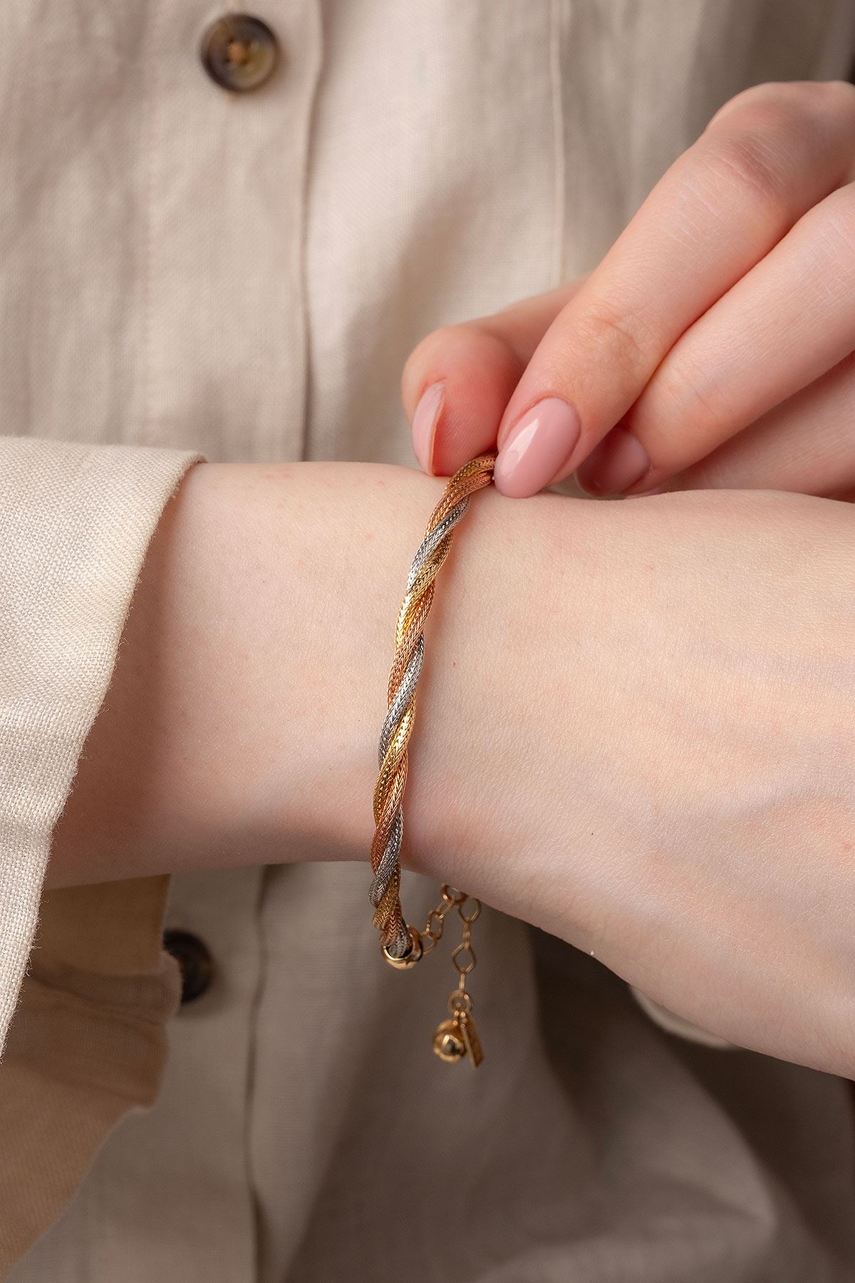 14 Ayar Altın Üç Renk Burgu Model Bileklik kaliteli işçiliği ile güvenle alışveriş yapabileceğiniz