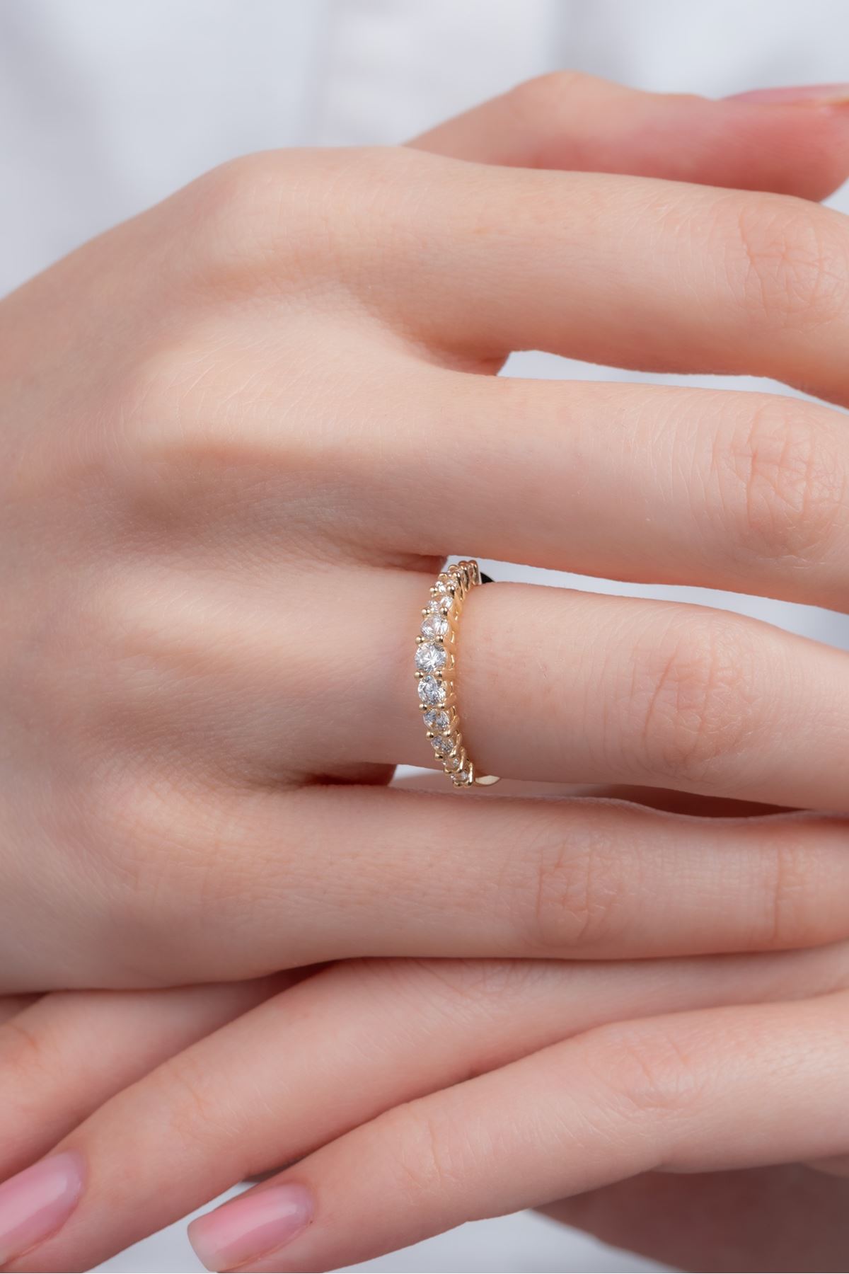 14 Ayar Altın Yarımtur Taşlı Yüzük kaliteli işçiliği ile güvenle alışveriş yapabileceğiniz