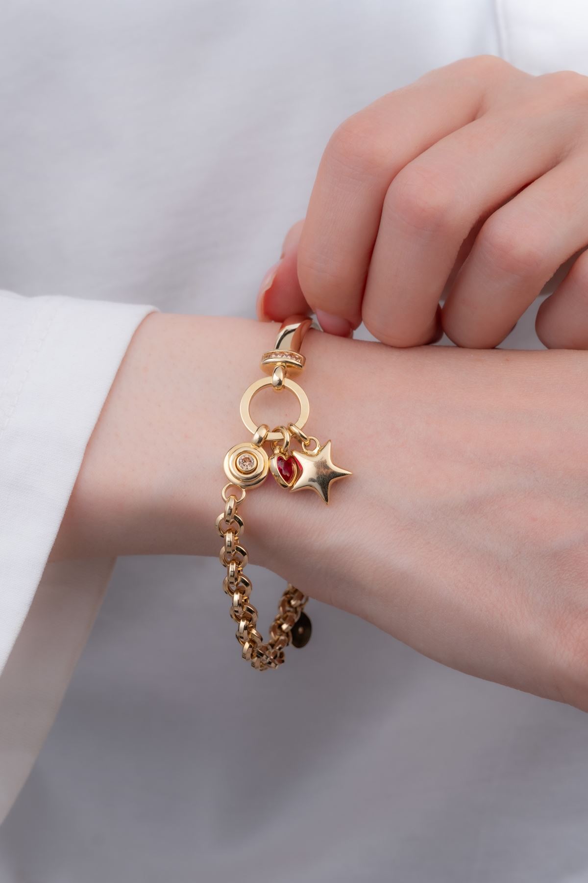 Doğum günü, sevgililer günü, anneler günü ve tüm özel anlarınızda değer verdiğiniz kişiyi de özel kılacak olan 14 Ayar Altın Yıldız Sallantılı Kelepçeli Bileklik vazgeçilmez bir hediye olacaktır. Her anında şımarmayı hak eden kadınlarımız için eşsiz 14 Ayar Altın Yıldız Sallantılı Kelepçeli Bileklik ile unutulmayacak bir hatıra bırakın.