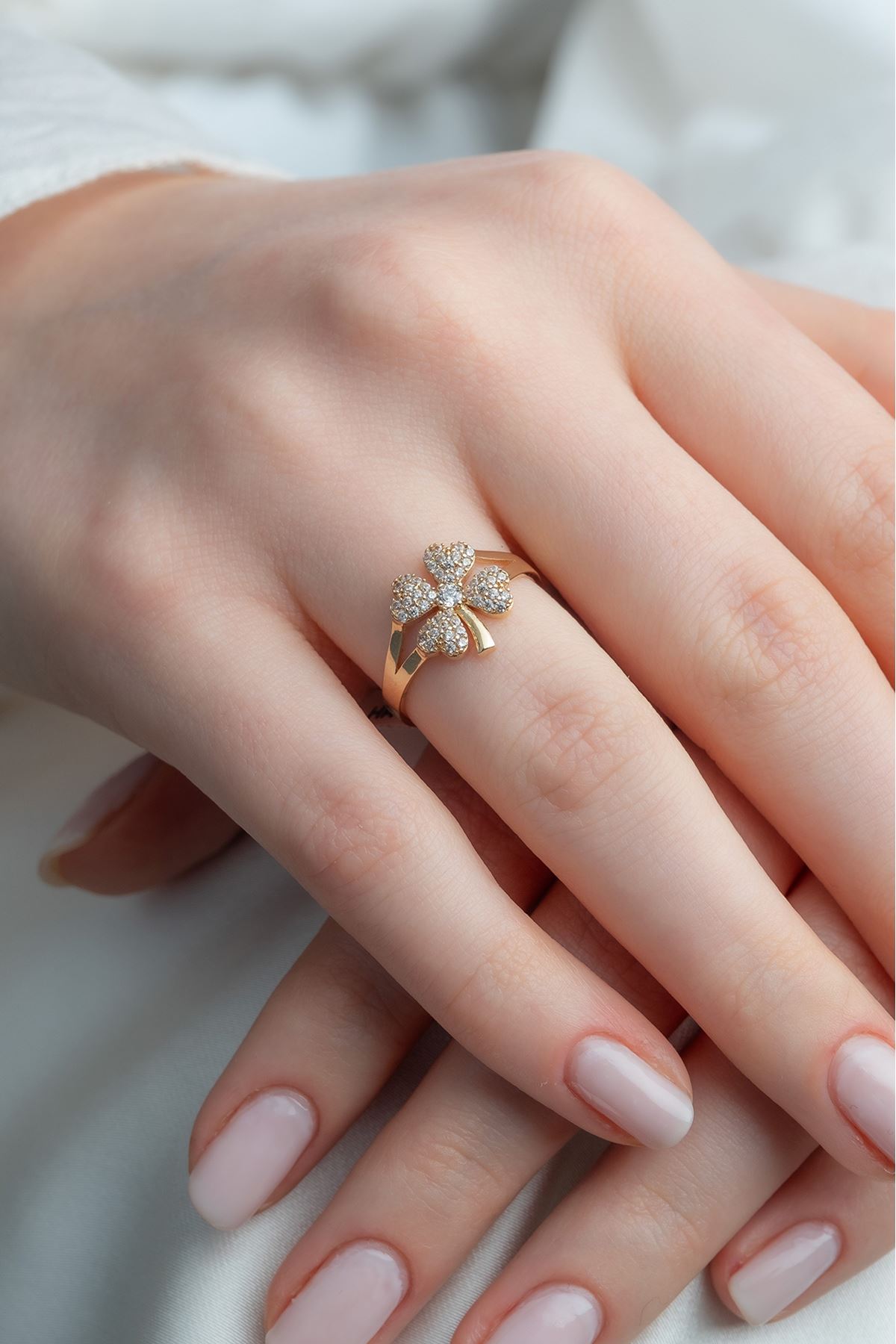 Doğum günü, sevgililer günü, anneler günü ve tüm özel anlarınızda değer verdiğiniz kişiyi de özel kılacak olan 14 Ayar Altın Yonca Figürlü Taşlı Yüzük vazgeçilmez bir hediye olacaktır. Her anında şımarmayı hak eden kadınlarımız için eşsiz 14 Ayar Altın Yonca Figürlü Taşlı Yüzük ile unutulmayacak bir hatıra bırakın.