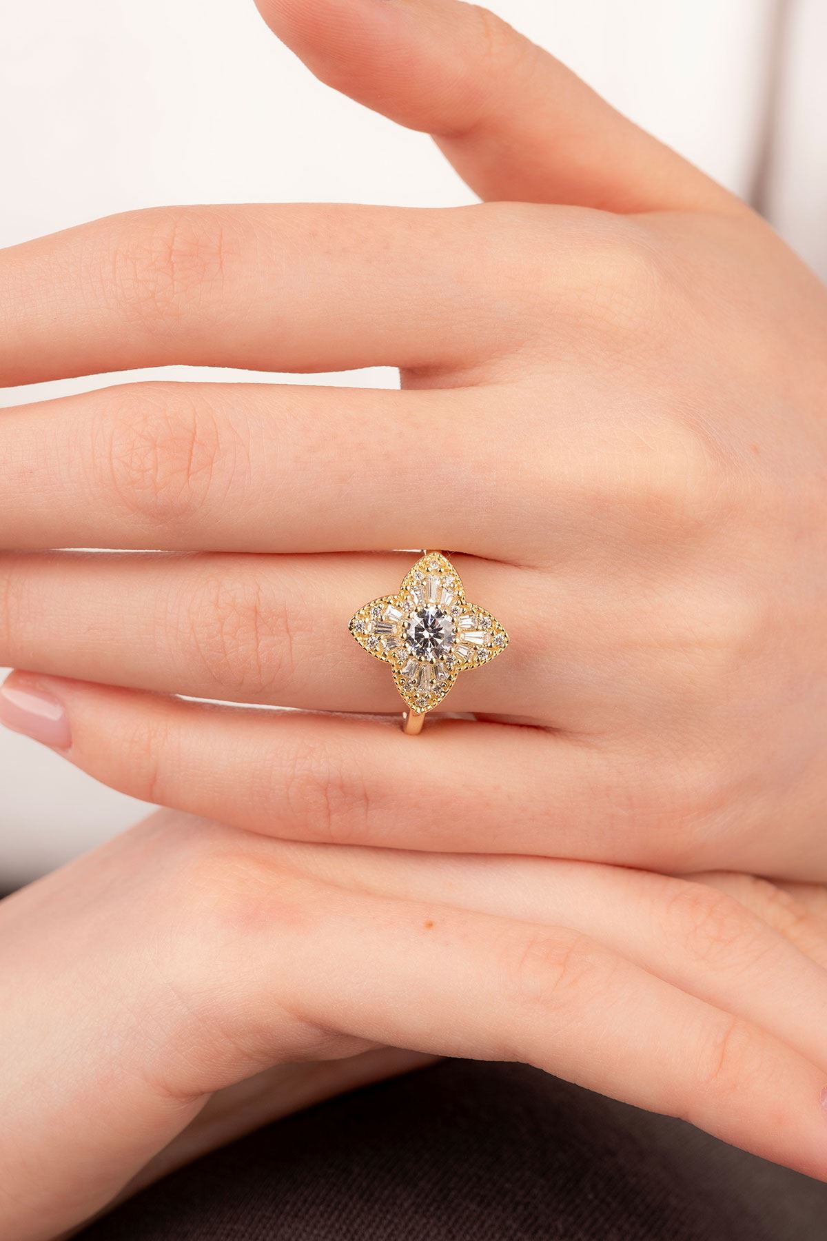 14 Ayar Altın Yonca Model Taşlı Yüzük kaliteli işçiliği ile güvenle alışveriş yapabileceğiniz