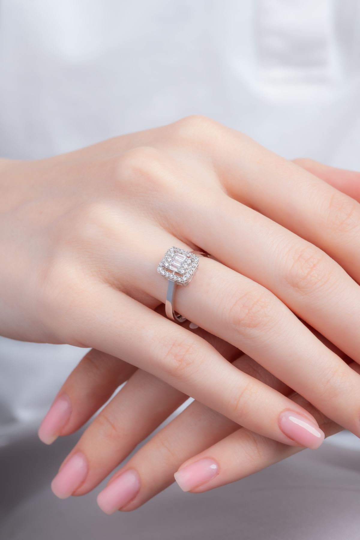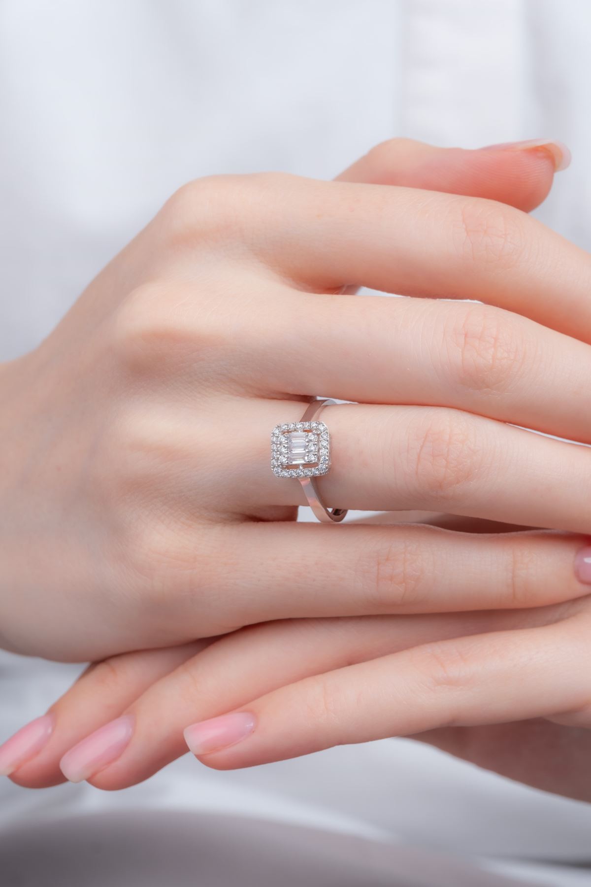 14 Ayar Beyaz Altın Baget Taşlı Yüzük kaliteli işçiliği ile güvenle alışveriş yapabileceğiniz