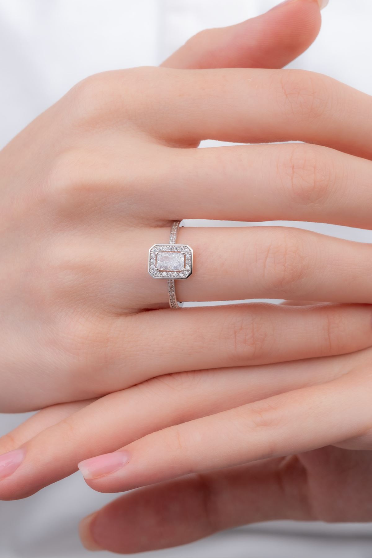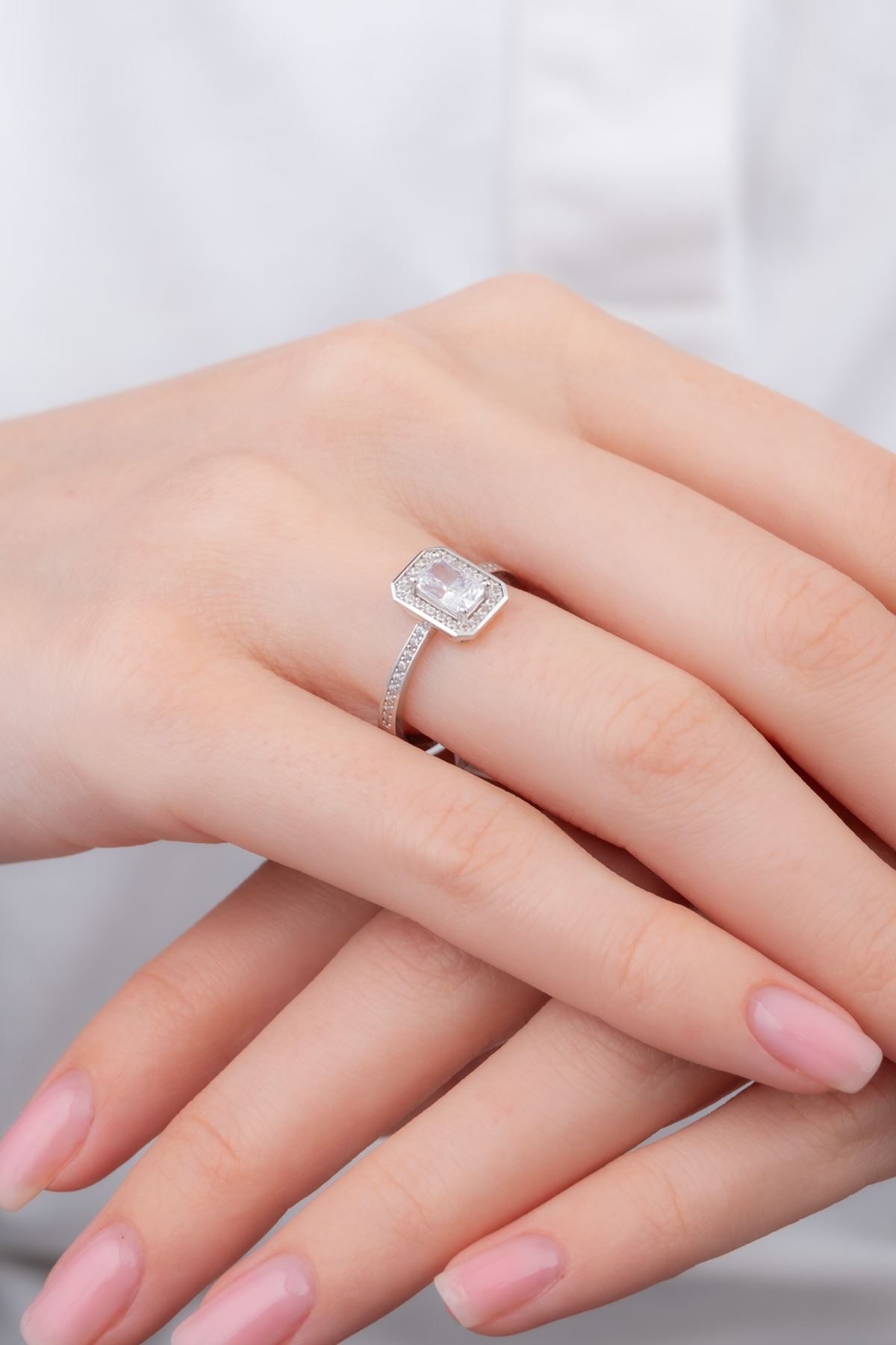 14 Ayar Beyaz Altın Baget Yüzük kaliteli işçiliği ile güvenle alışveriş yapabileceğiniz