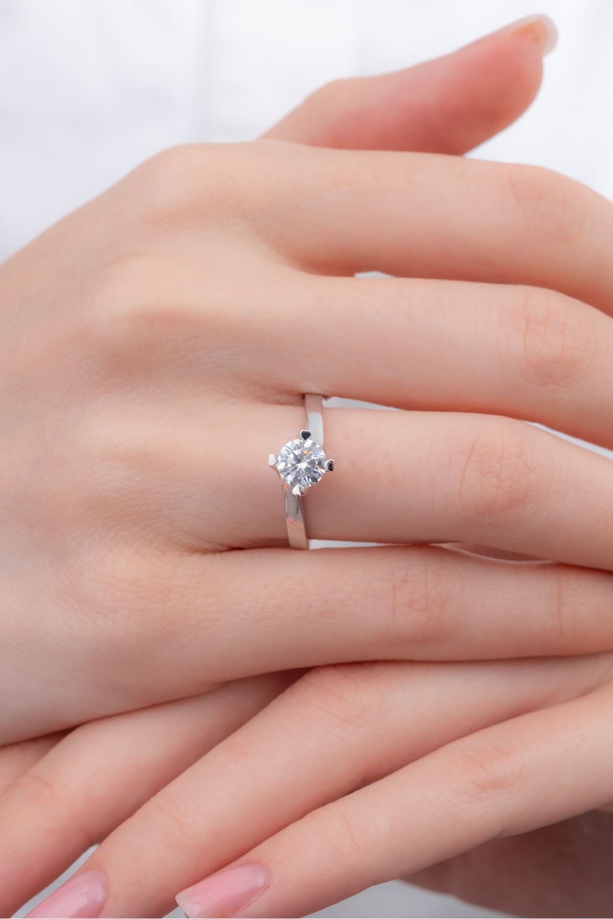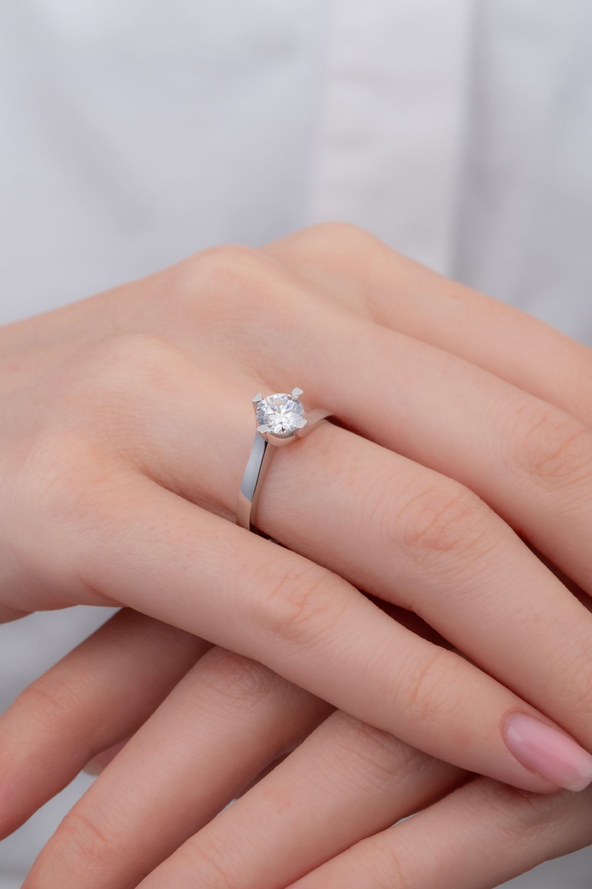 14 Ayar Beyaz Altın Çapraz Tırnak Tektaş Yüzük kaliteli işçiliği ile güvenle alışveriş yapabileceğiniz