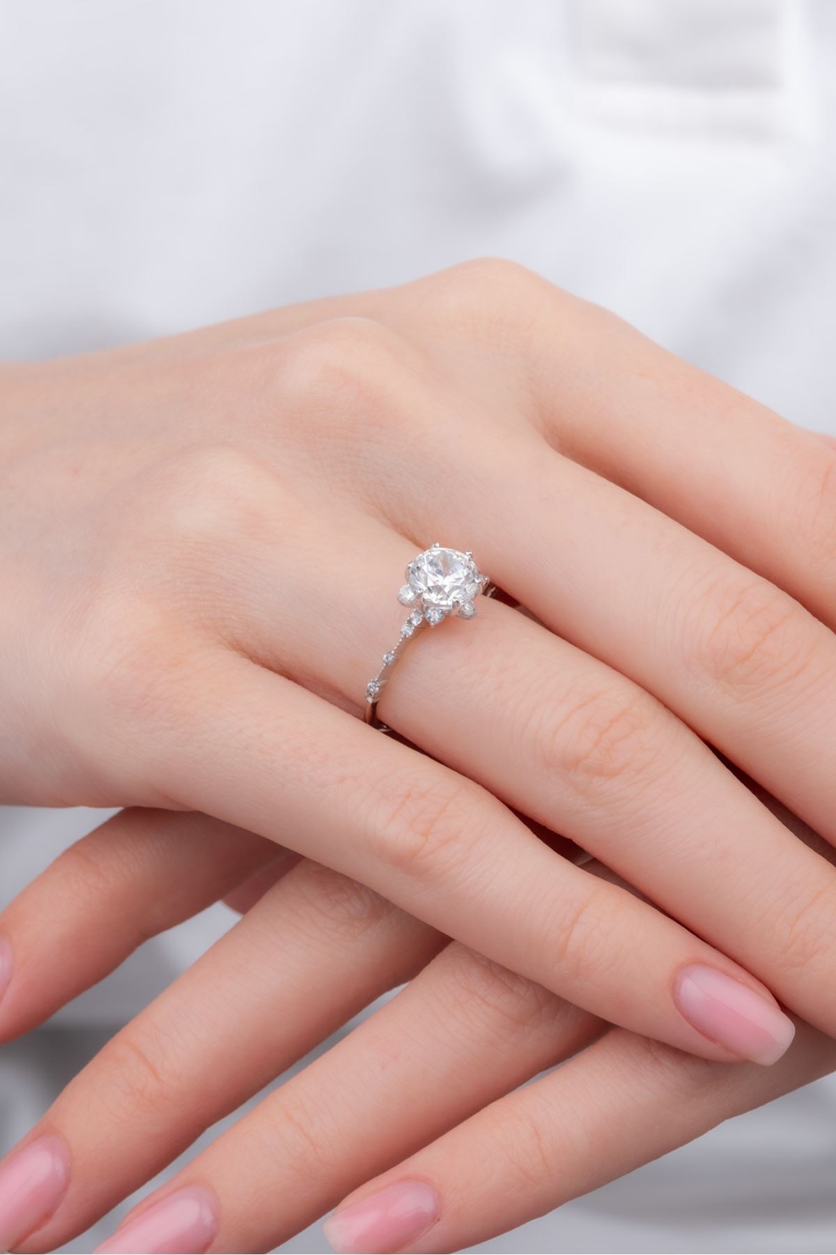 14 Ayar Beyaz Altın Kenarları Taşlı Lotus Yüzük kaliteli işçiliği ile güvenle alışveriş yapabileceğiniz