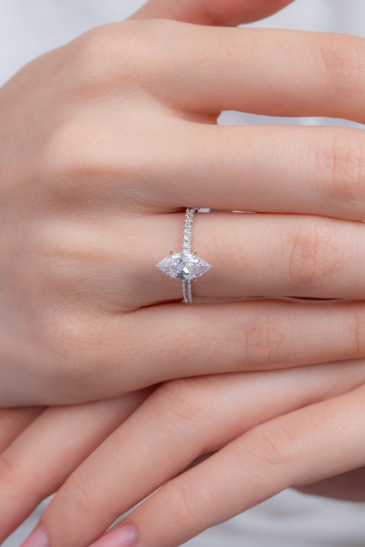 14 Ayar Beyaz Altın Markiz Kesim Tektaş Yüzük kaliteli işçiliği ile güvenle alışveriş yapabileceğiniz