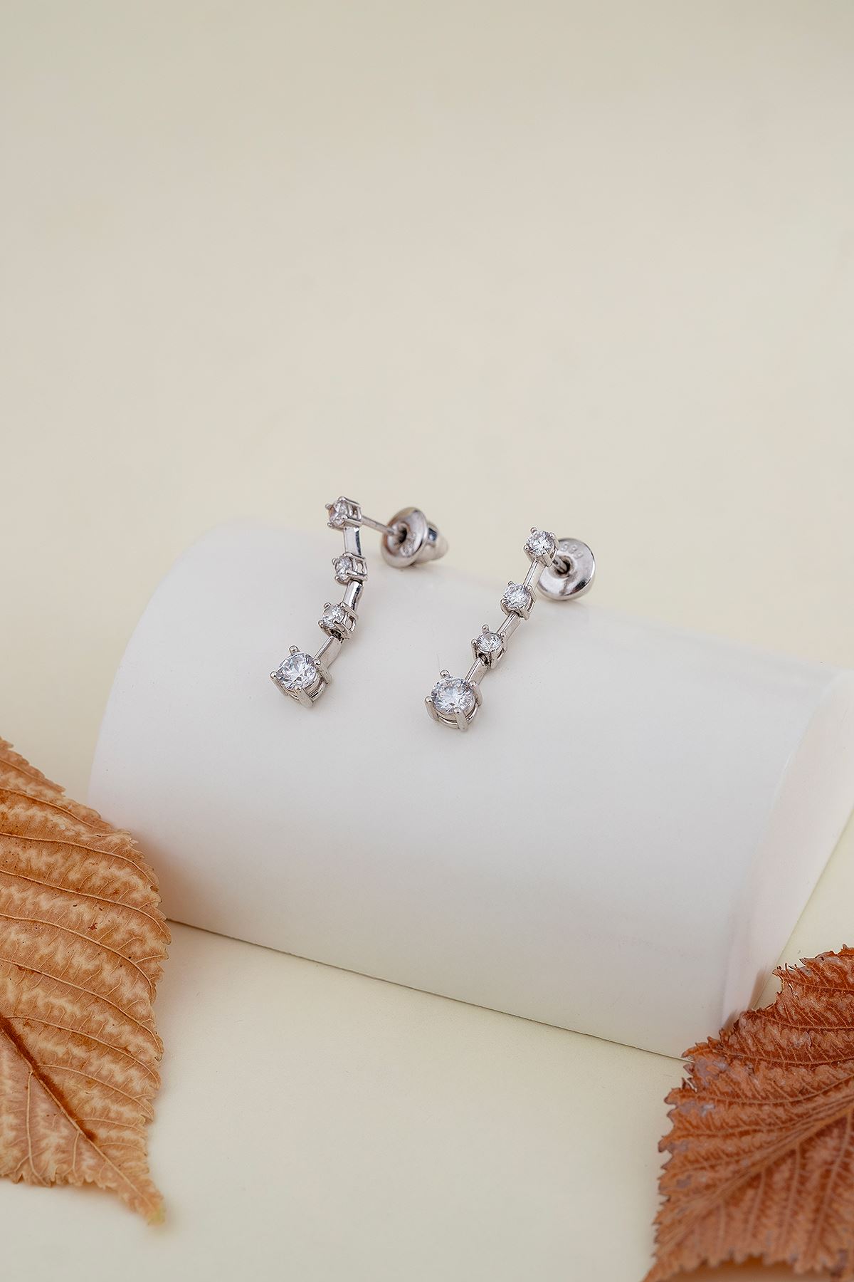 14 Ayar Beyaz Altın Taşlı Su Yolu Küpe kaliteli işçiliği ile güvenle alışveriş yapabileceğiniz