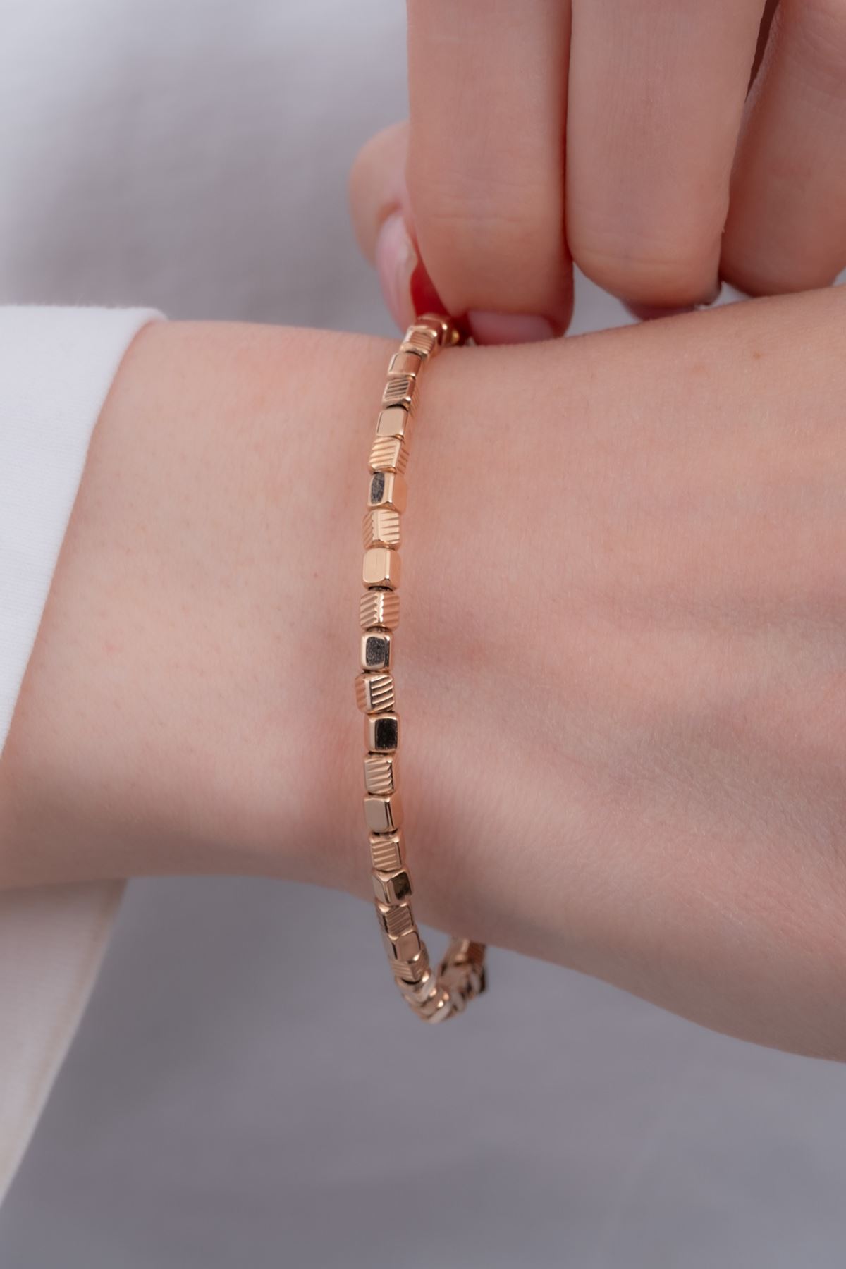 14 Ayar Rose Altın Küp Detaylı Trend Bilezik kaliteli işçiliği ile güvenle alışveriş yapabileceğiniz