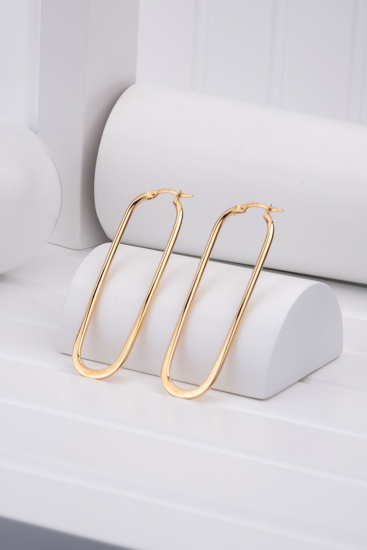 14 Ayar Sarı Altın Dikdörtgen Halka Küpe kaliteli işçiliği ile güvenle alışveriş yapabileceğiniz