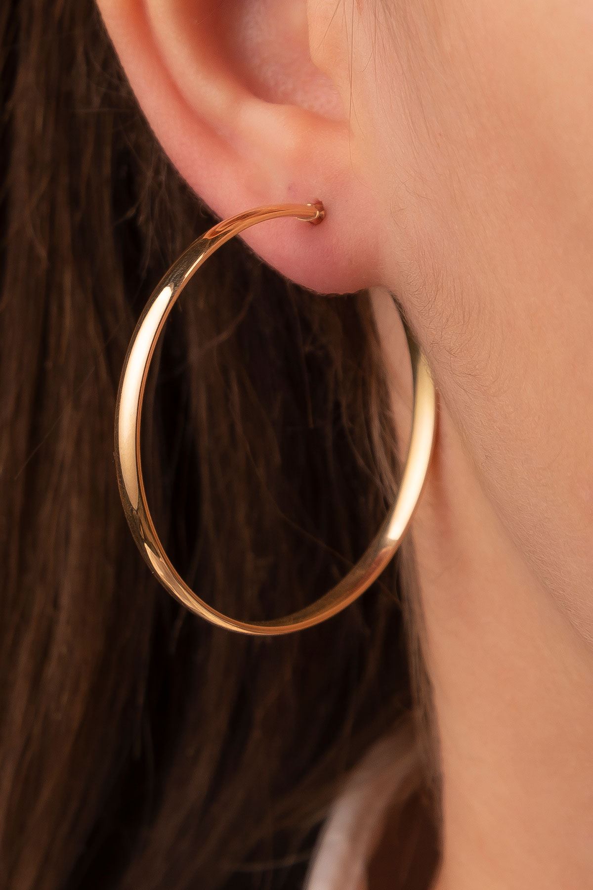14 Ayar Sarı Altın Halka Bombeli Küpe kaliteli işçiliği ile güvenle alışveriş yapabileceğiniz