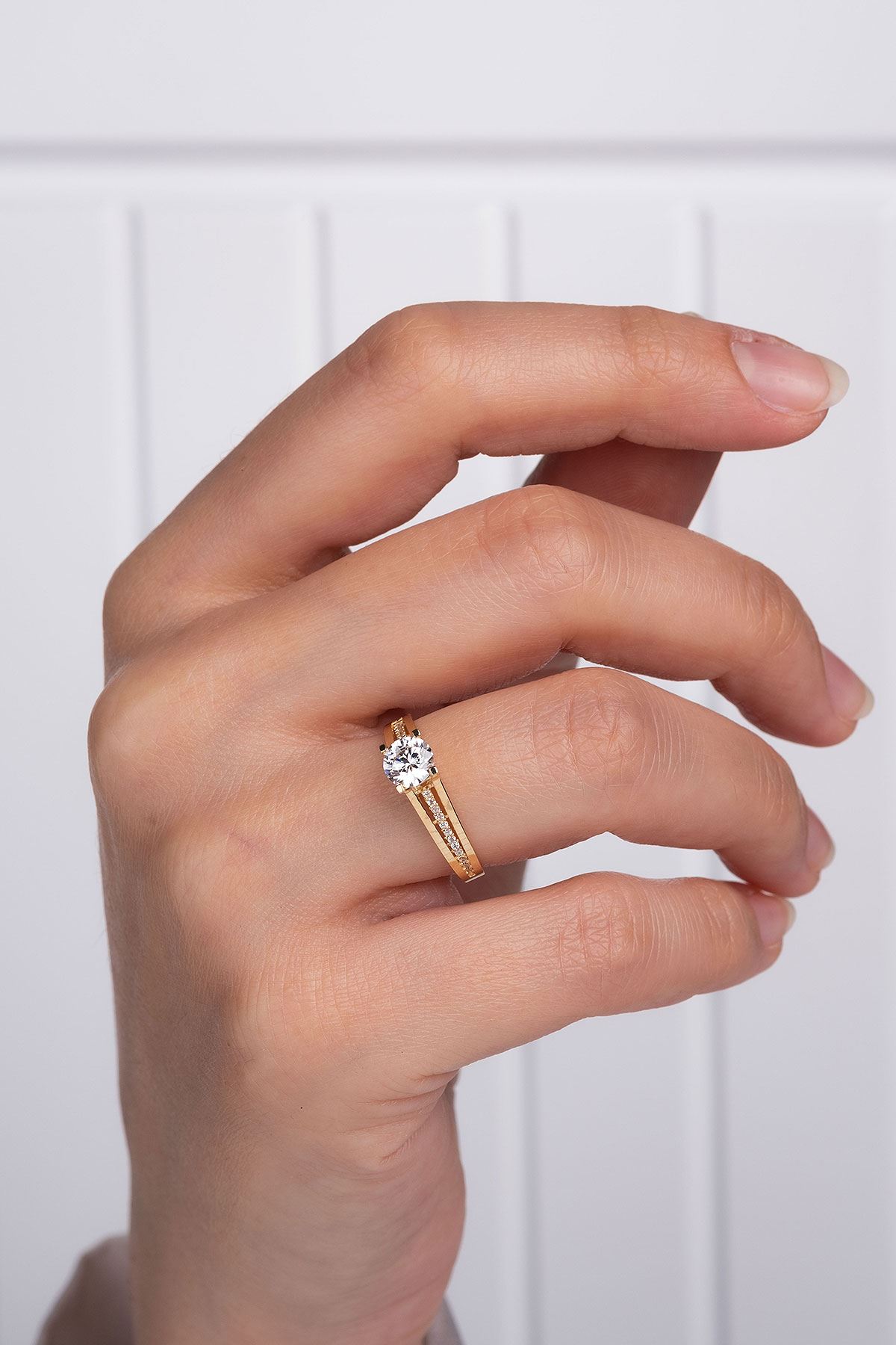 14 Ayar Sarı Altın Kenar Taşlı Tektaş Yüzük kaliteli işçiliği ile güvenle alışveriş yapabileceğiniz