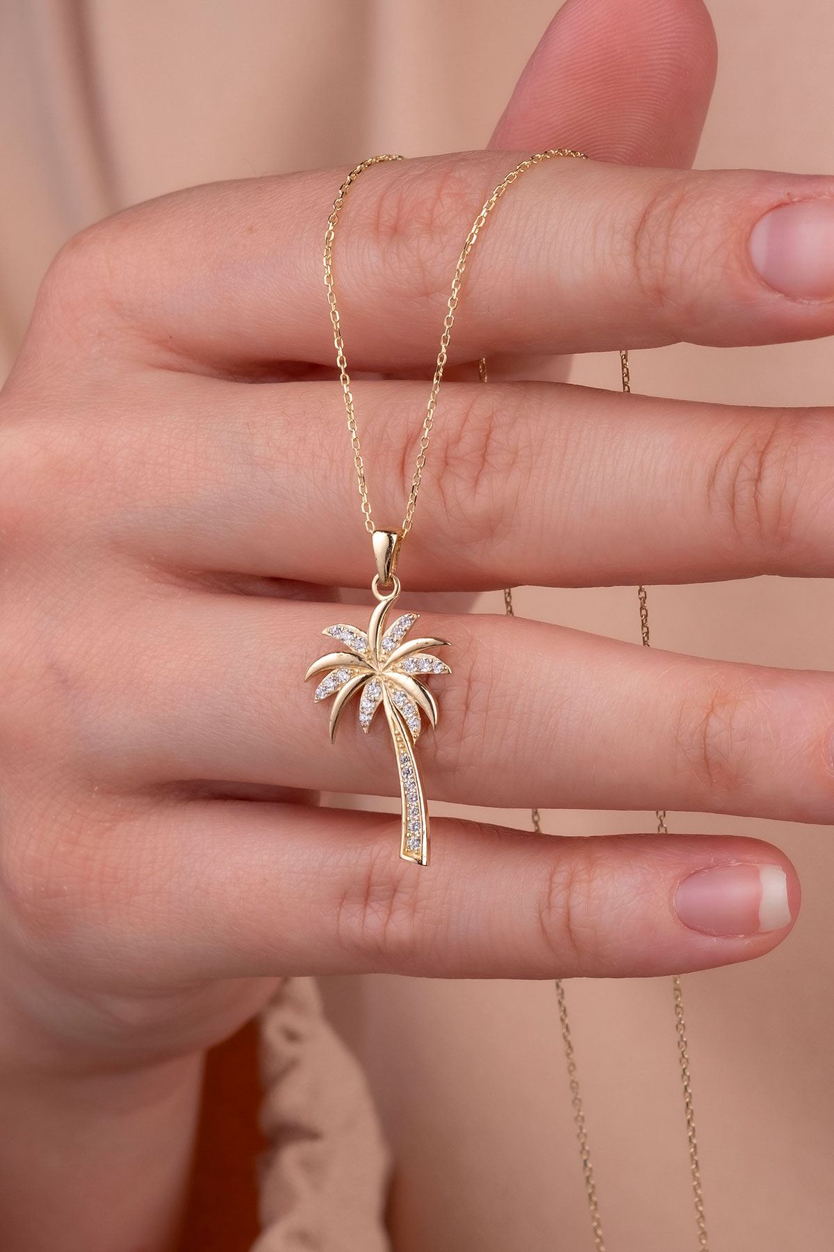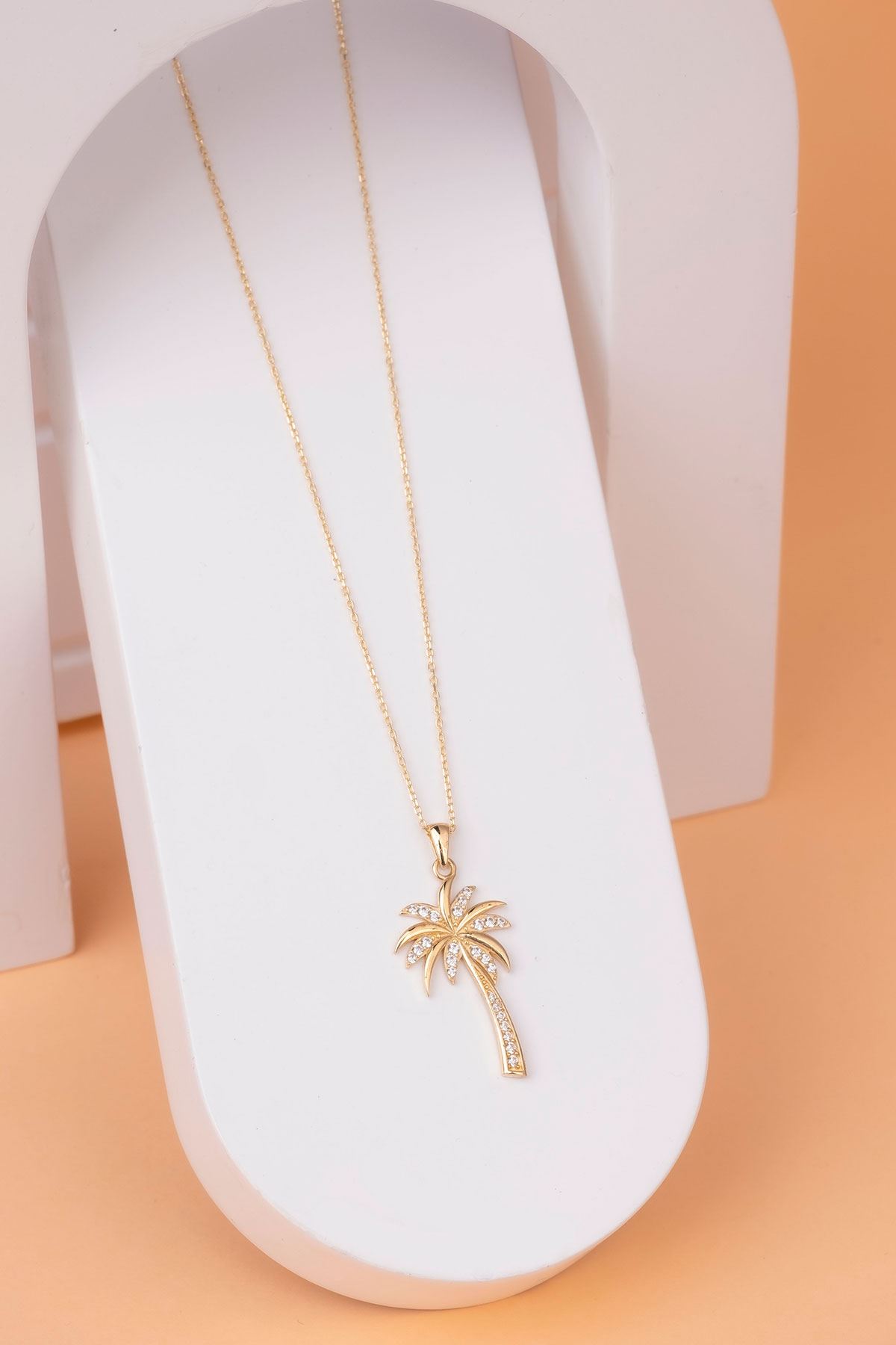 14 Ayar Sarı Altın Palmiye Kolye kaliteli işçiliği ile güvenle alışveriş yapabileceğiniz