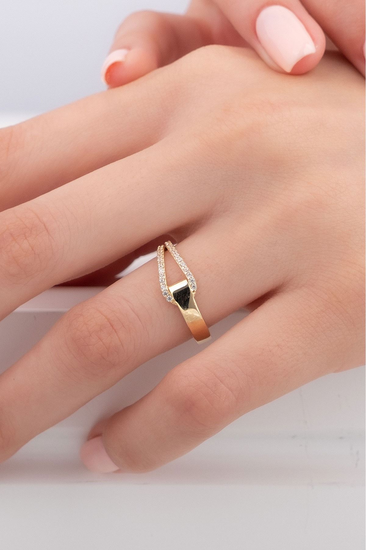 14 Ayar Sarı Altın Tasarım Yüzük kaliteli işçiliği ile güvenle alışveriş yapabileceğiniz